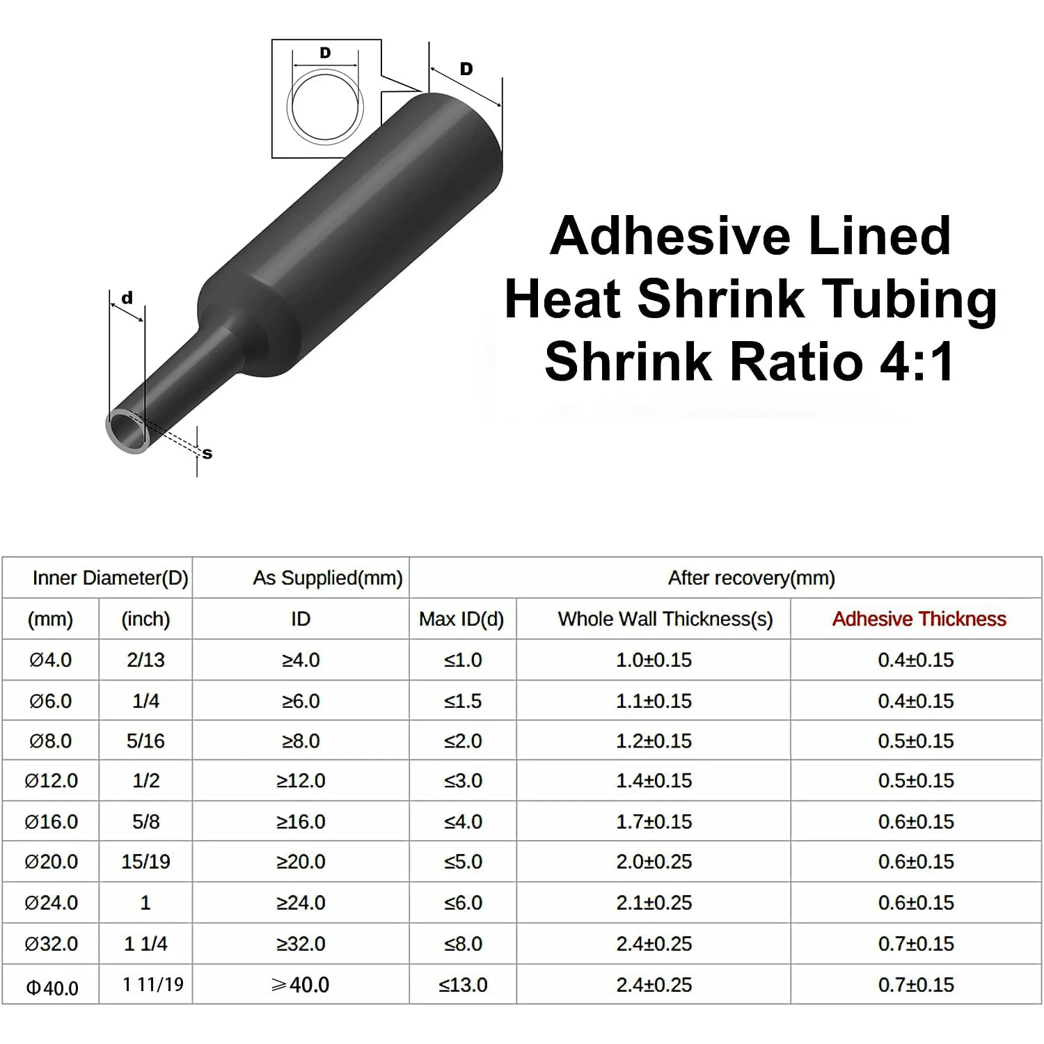 Quick 4:1 Shrink Ratio: When heated, the heat shrink tubing shrinks to 1/4 of its original size, providing an even tighter seal. Shrink Temperature: 80-120°C (176°F-248°F), ensuring your wires are instantly connected.