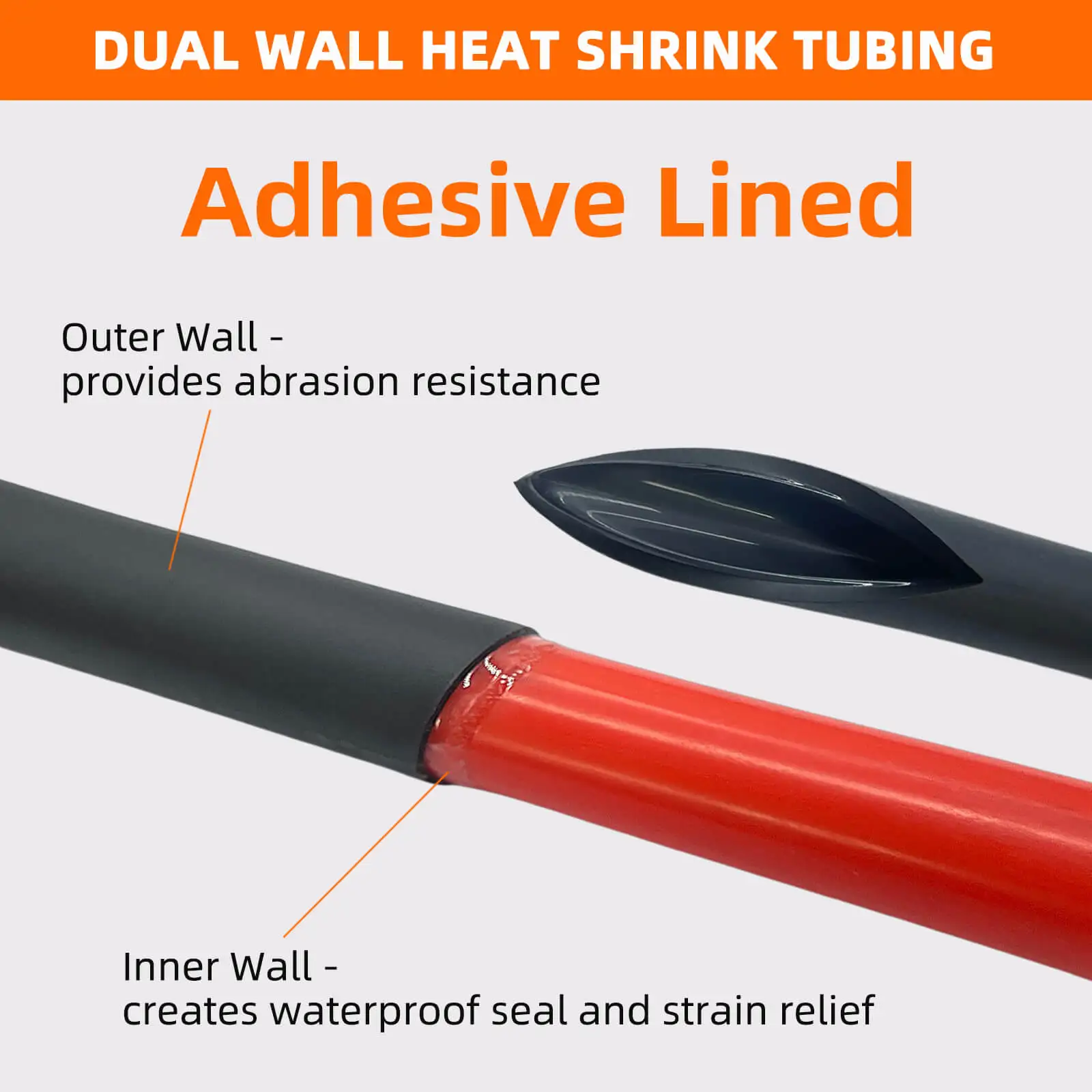 Dual-Wall Adhesive Lined Heat Shrink Tubing: During heating, the outer heat shrink tubing tightly contracts, while the inner adhesive layer melts, sealing the connection area. This creates a tight and long-lasting seal, providing excellent protection.