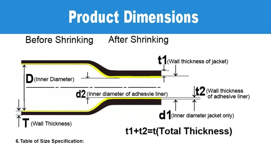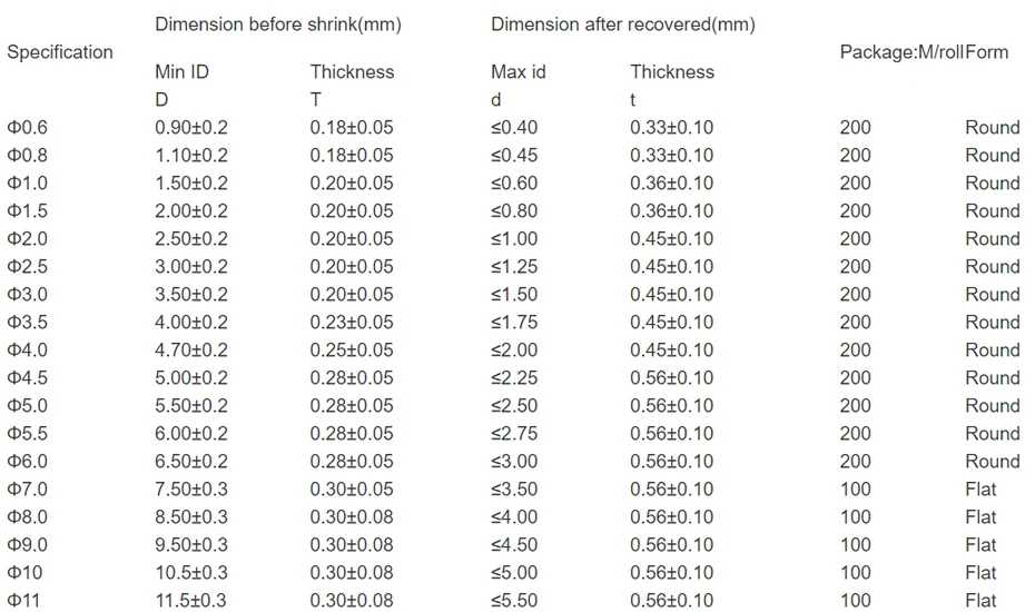 Heat shrink ratio: 2:1(will maximum shrink to 1/2 its supplied diameter)