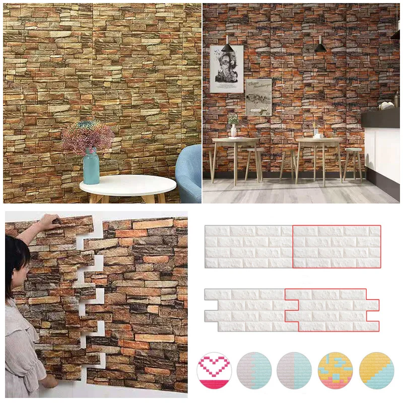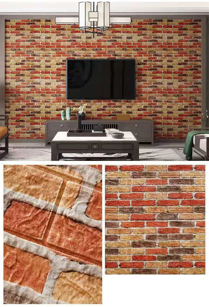 1/5/12pcs Foam 3D Wall Decor Sticker Waterproof Self-adhesive Brick Wallpaper Wall Stickers Background For Living Room Kitchen TV Backdrop