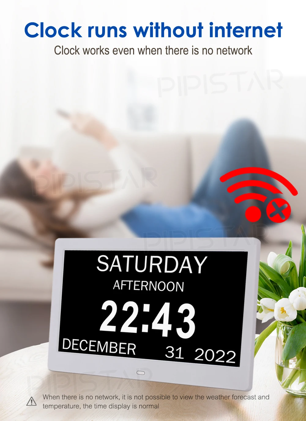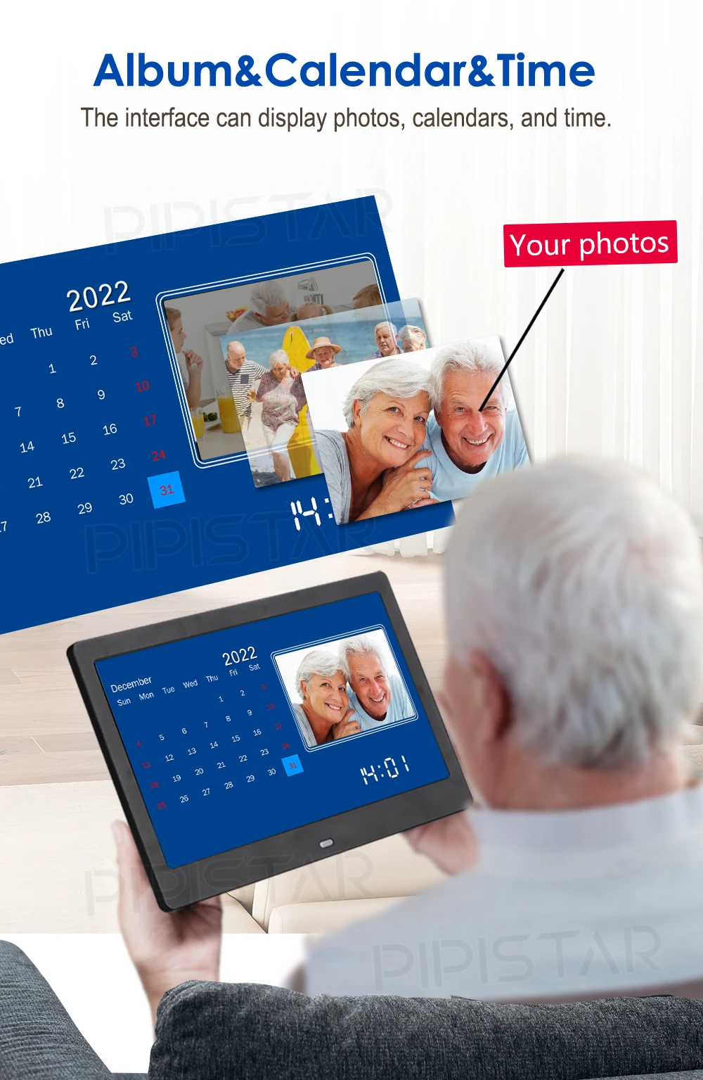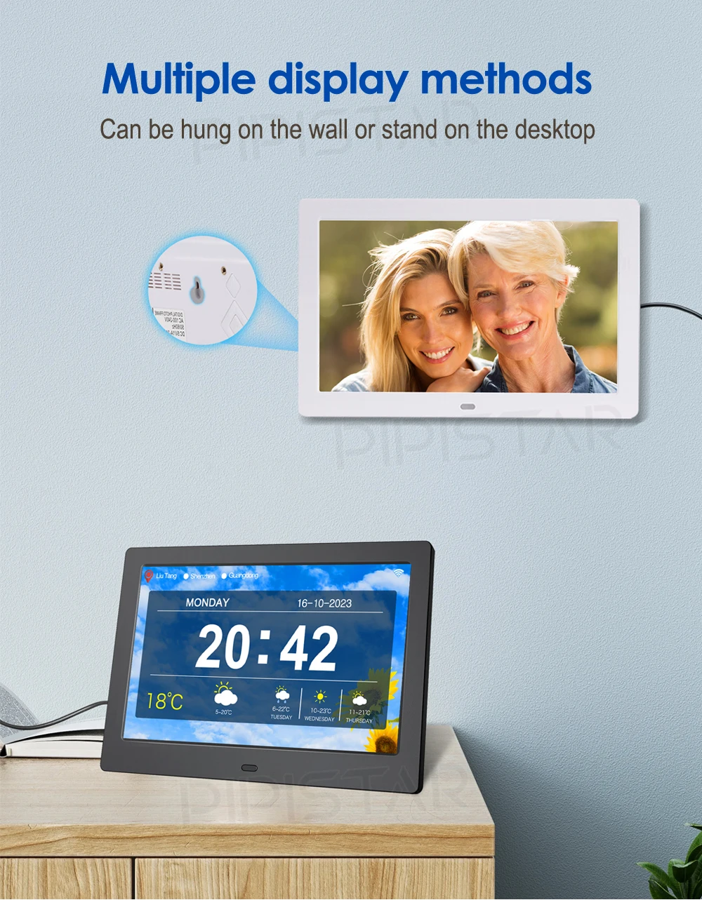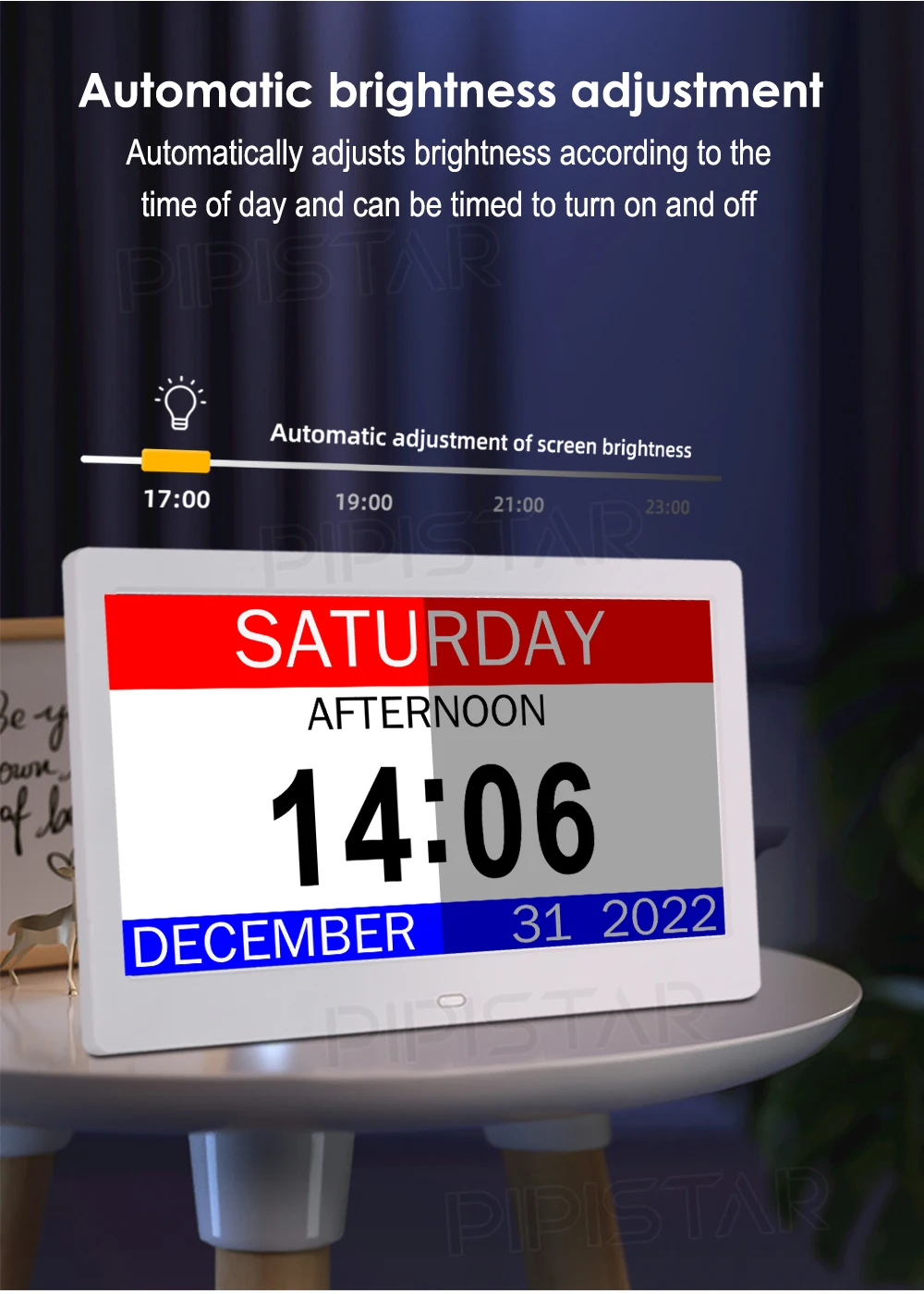 It is not only a digital watch, but also a high-resolution electronic photo album with a resolution of 1024 x 768. If there is a power outage, we will equip backup batteries. It will automatically reset at the correct time, when the power is restored and the date is confirmed