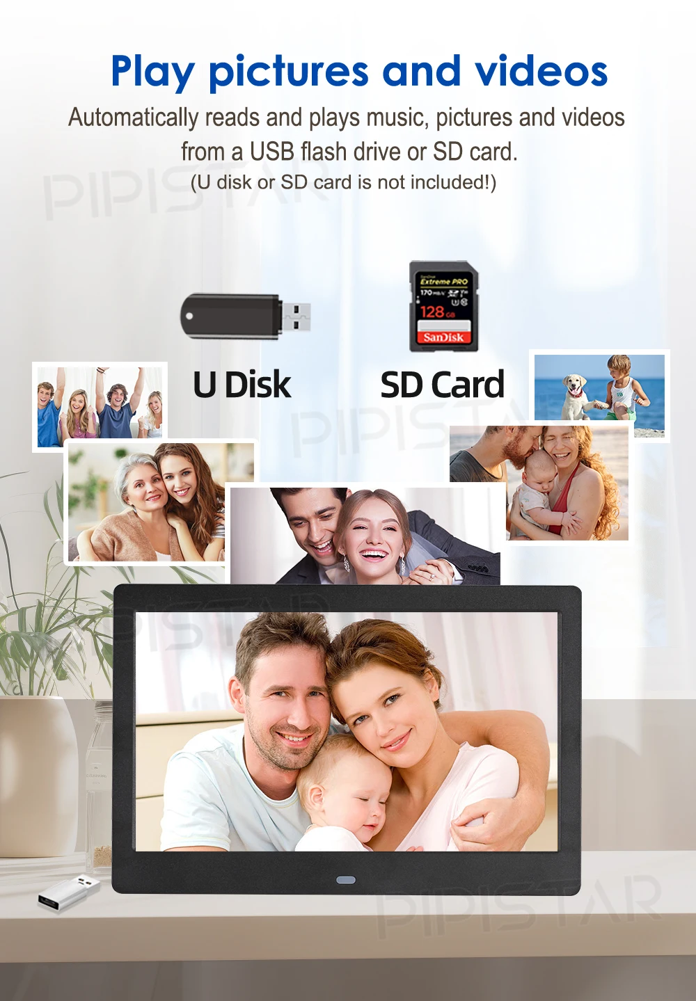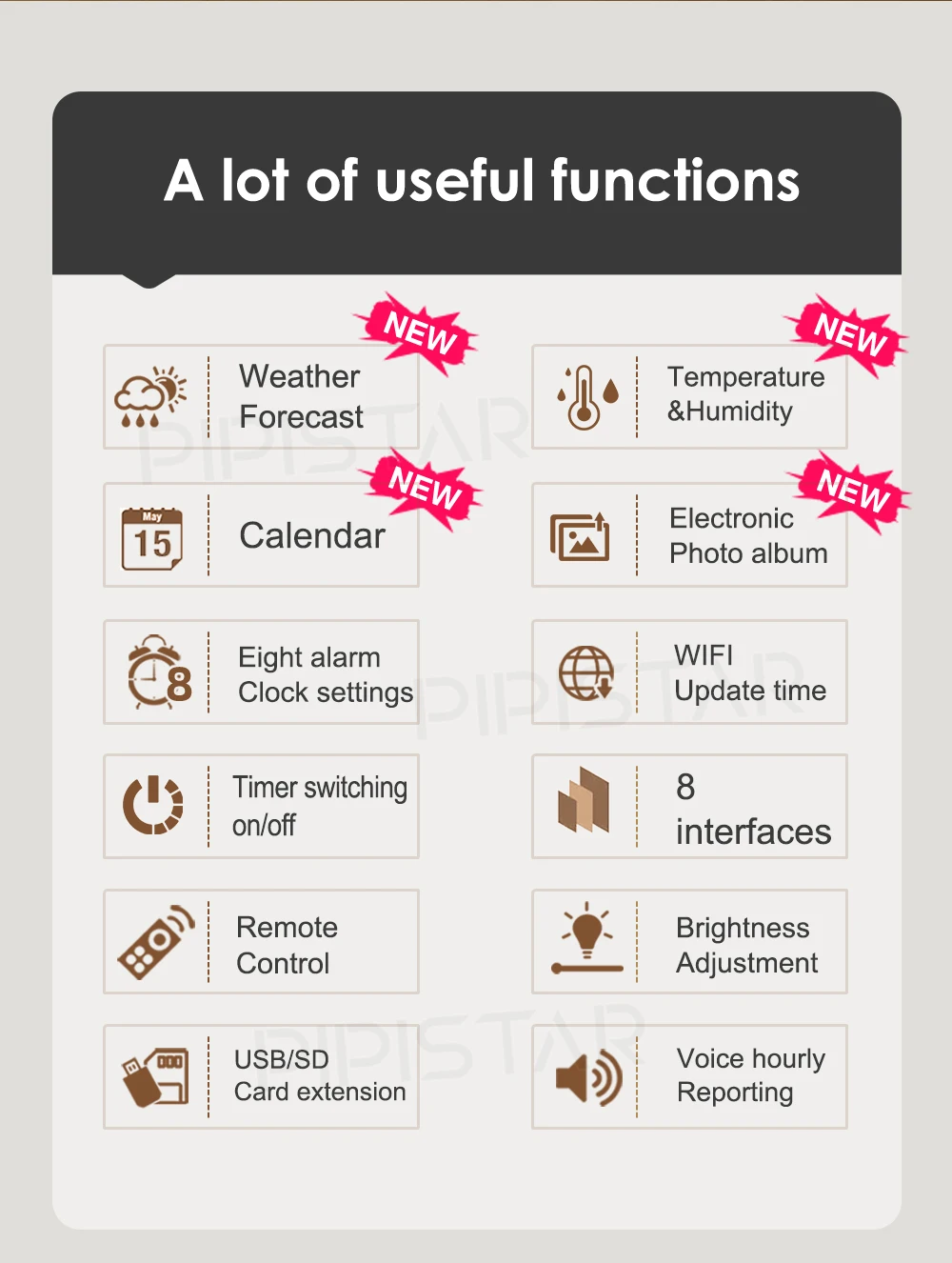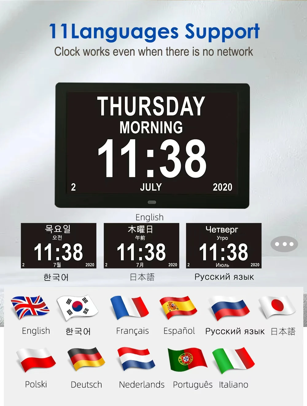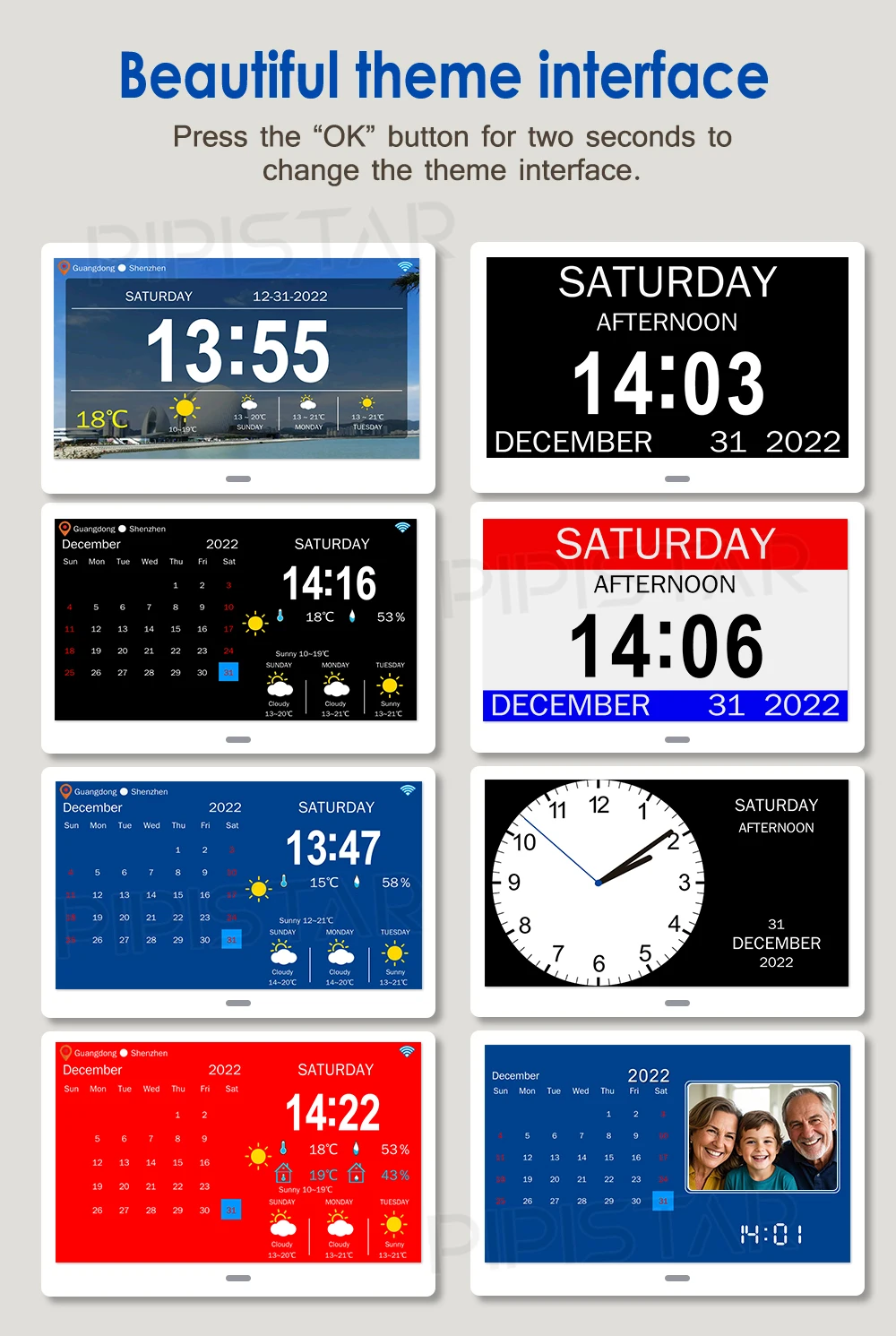 It is not only a digital watch, but also a high-resolution electronic photo album with a resolution of 1024 x 768. If there is a power outage, we will equip backup batteries. It will automatically reset at the correct time, when the power is restored and the date is confirmed