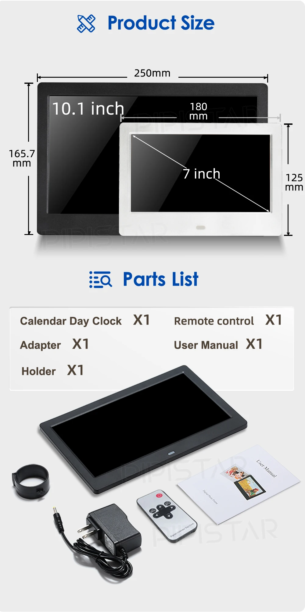 1. Two size options: 7 inches/10.1 inches; Two color options: black/white