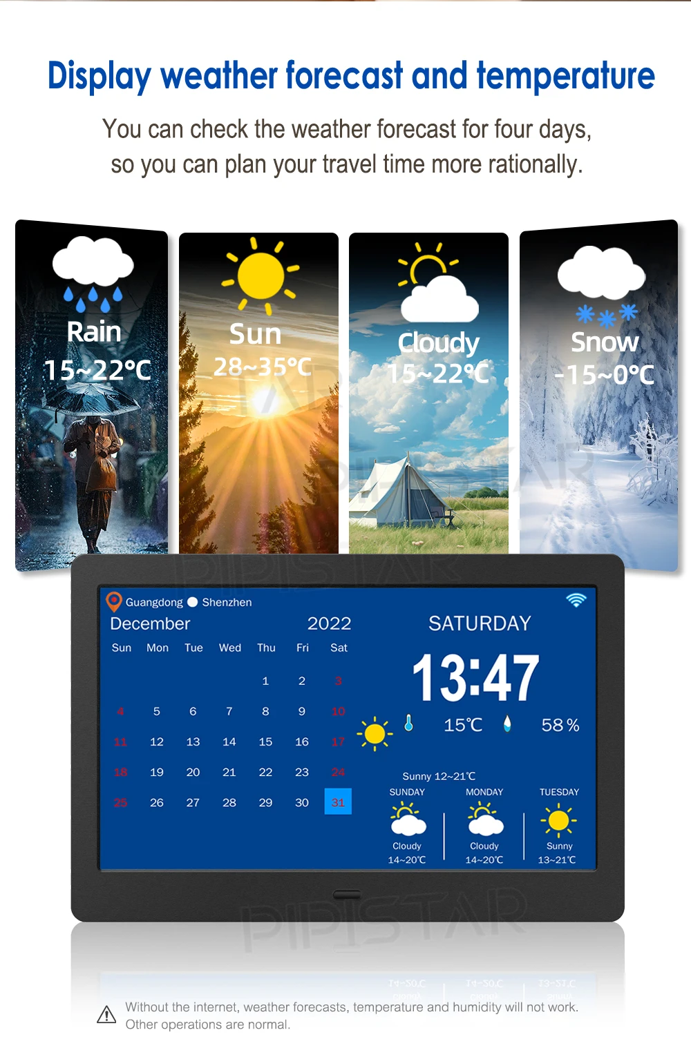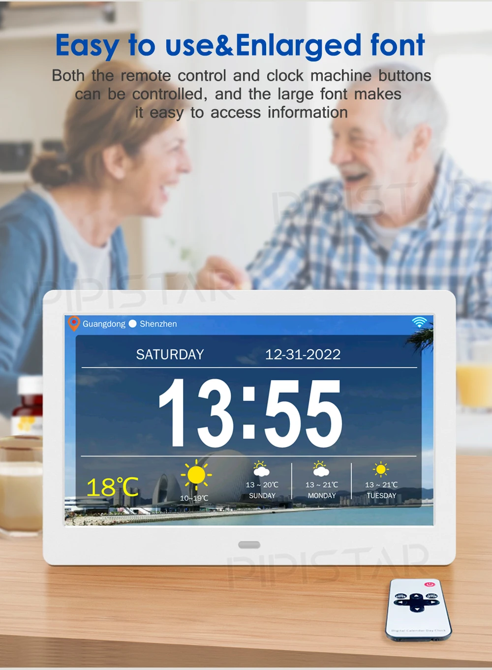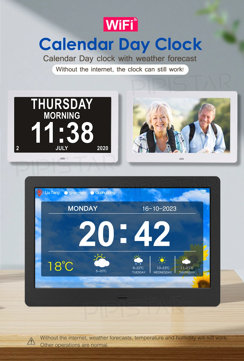 10.1/7-inch, WiFi calendar, photo frame, dementia clock, time, date, weather forecast, smart desktop clock