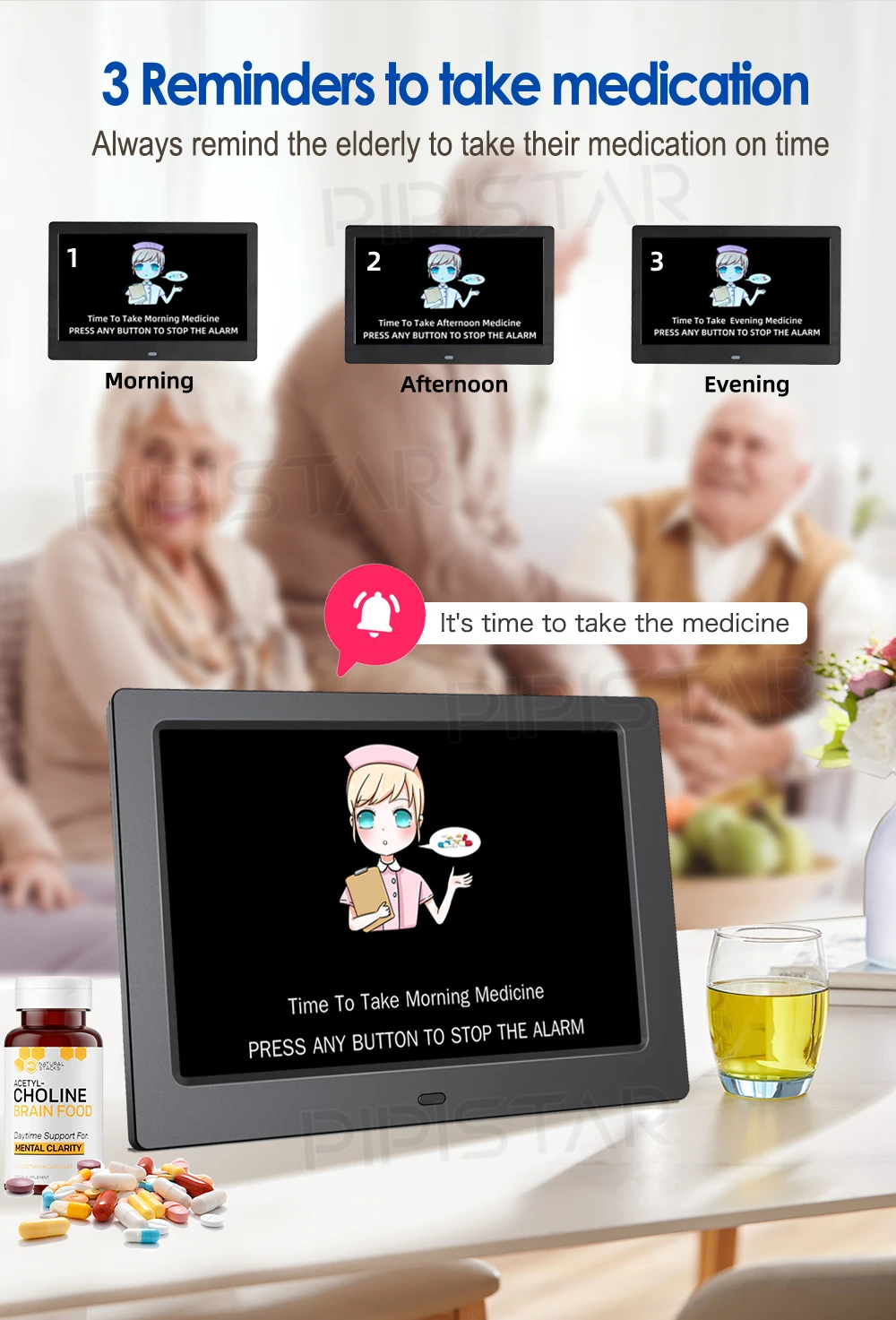 4. Can set 5 alarms and 3 medication reminders;