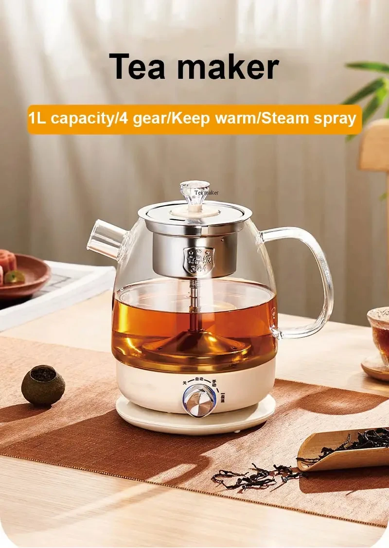 1L Black Tea Tea Maker Glass Electric Kettle Pu'er Steamed Tea Automatic Thermal Insulation Tea Kettle 4 gear Temperature Adjust