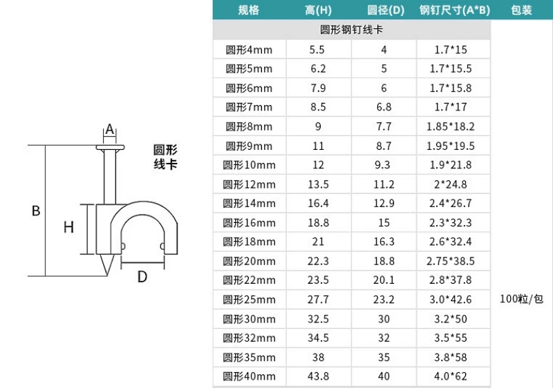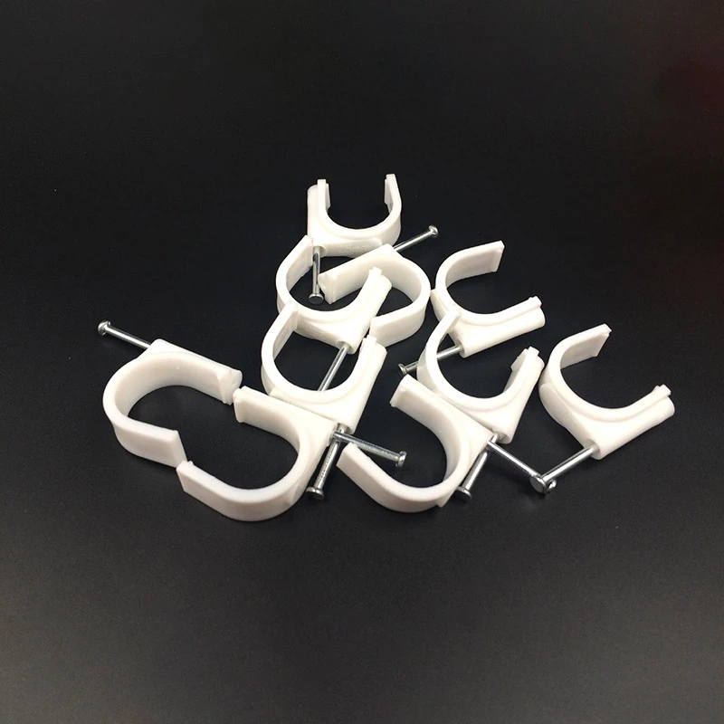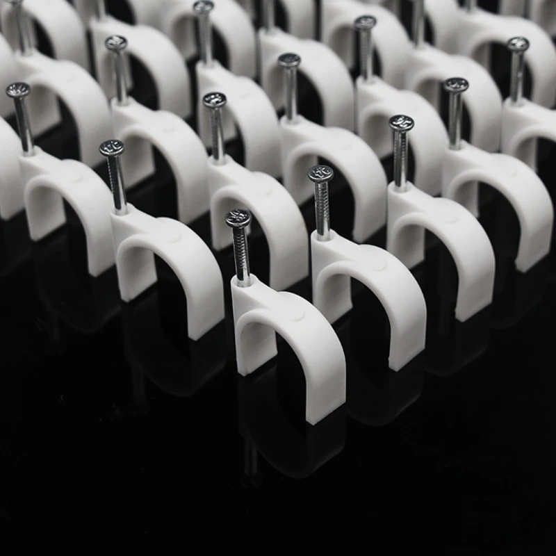 100Pcs circle cable clips Steel nail wire clip 4-50mm round plastic nylon wire clip telephone network cable fixed nail pressure wire clip