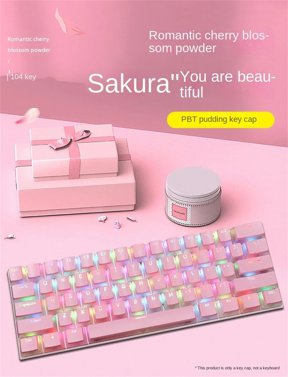 The linked product is pudding double-leather milk keycap, with closed characters, good light transmission effect and delicate hand feel, suitable for L61/87/104 key standard layout mechanical keyboard