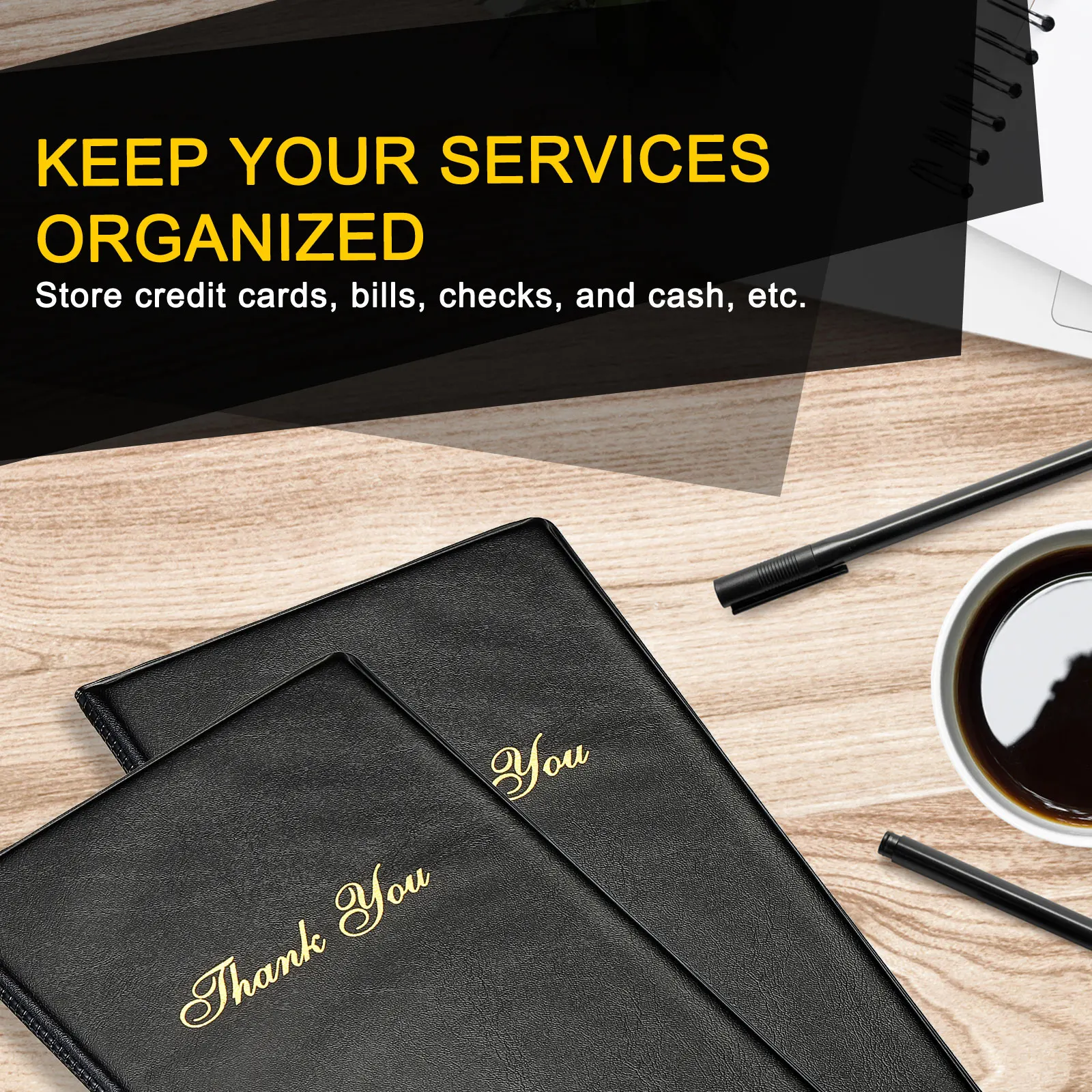 These check card holders are elegant, sturdy, and practical, store credit cards, bills, checks, and cash, etc, necessary for restaurants, cafes, bars, food service, to keep your services organized.
