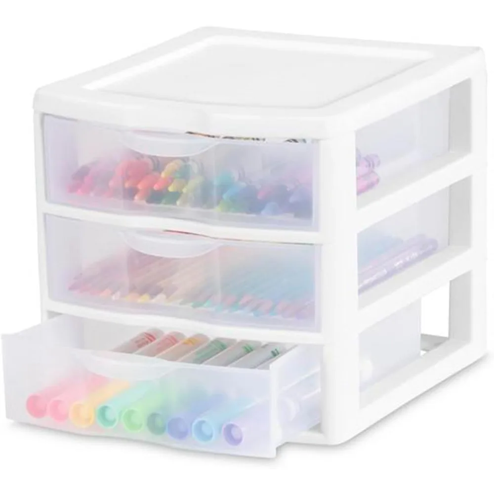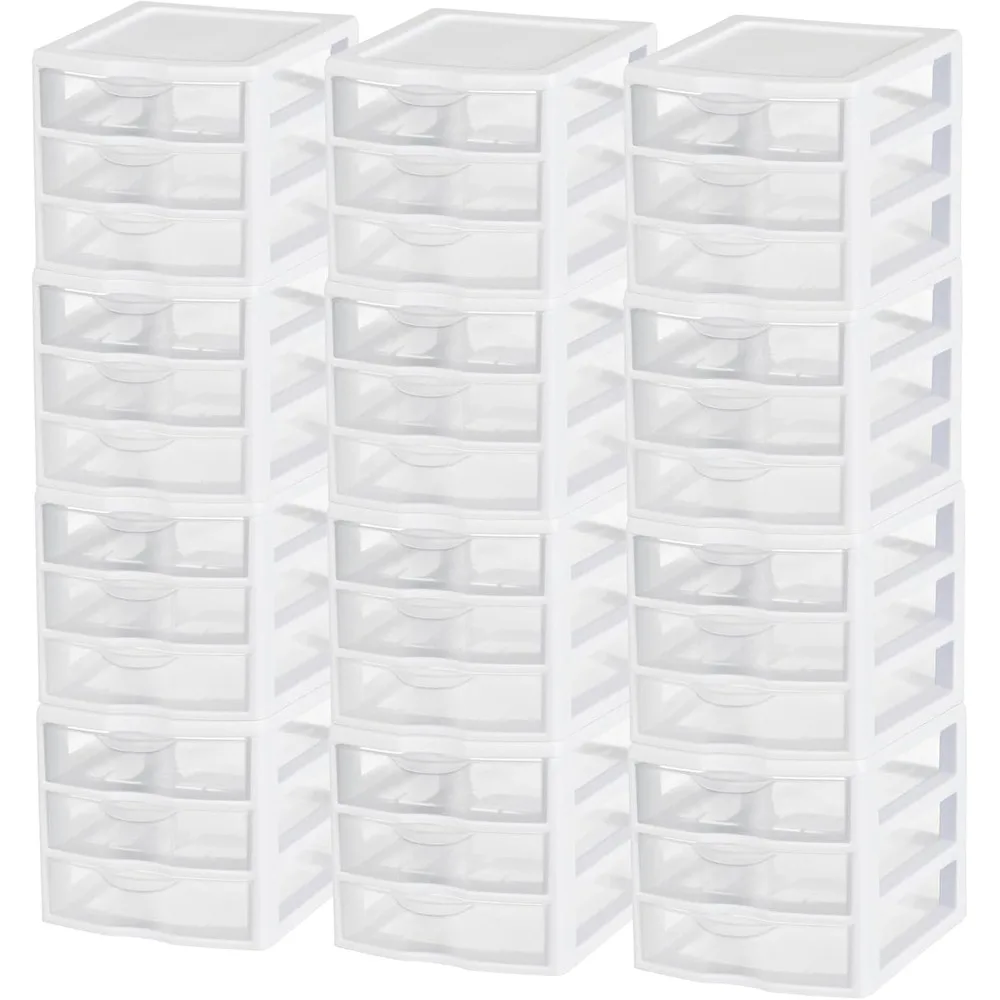 This product offers a set of 12 compact countertop drawers, perfect for organizing daily essentials like paper, pens, mail, and keys, which helps to declutter your countertops. These small drawers are also ideal for storing makeup, jewelry, and hair accessories neatly on dressers or bathroom counters. They are designed for craft or sewing rooms, keeping smaller tools organized and easily accessible. Each drawer measures 8.50 inches in length, 7.25 inches in width, and 6.87 inches in height. The drawers glide smoothly open with minimal effort and remain securely closed, even if accidentally tipped over. These units can be stacked to create a comprehensive organization system for small items, suitable for various settings such as offices, craft rooms, or workshops.