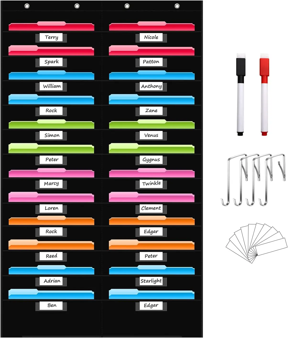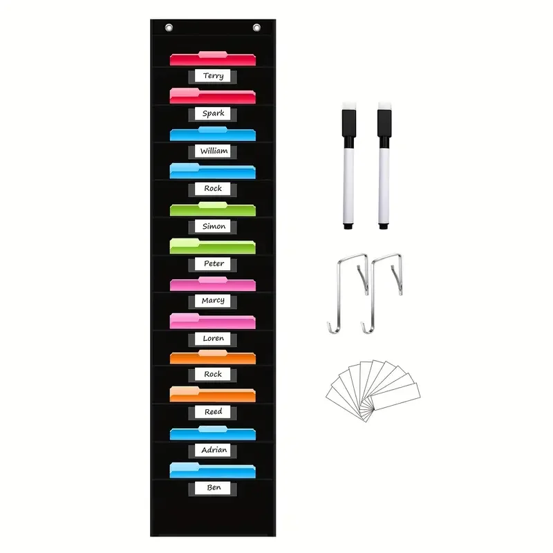 Equipped with hooks and labels, this organizer allows for easy sorting and retrieval of documents.