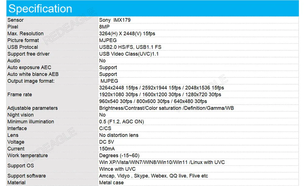 3) High resolution 4K 3264*2448 Autofocus usb camera