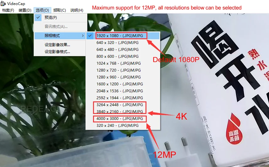 The default 1080P resolution, the maximum resolution is 15fps 12MP 4000x3000. You can set the resolution according to the video software. Our products support most common video software.