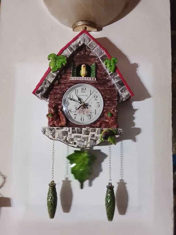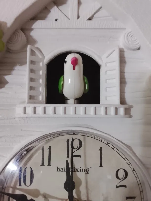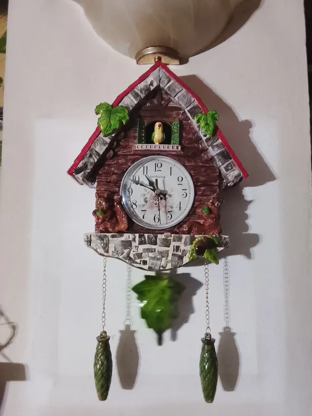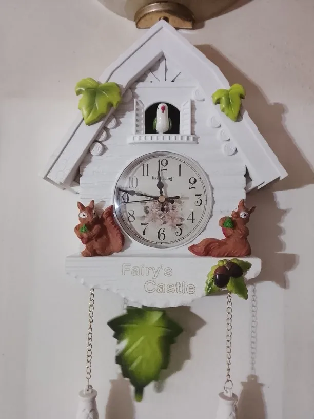 1. Time Reporting: The wall clock can report the time hourly from 7am to 10pm. Accompaning by the sound of running water, cuckoo calls "coo coo" and flaps its wings.