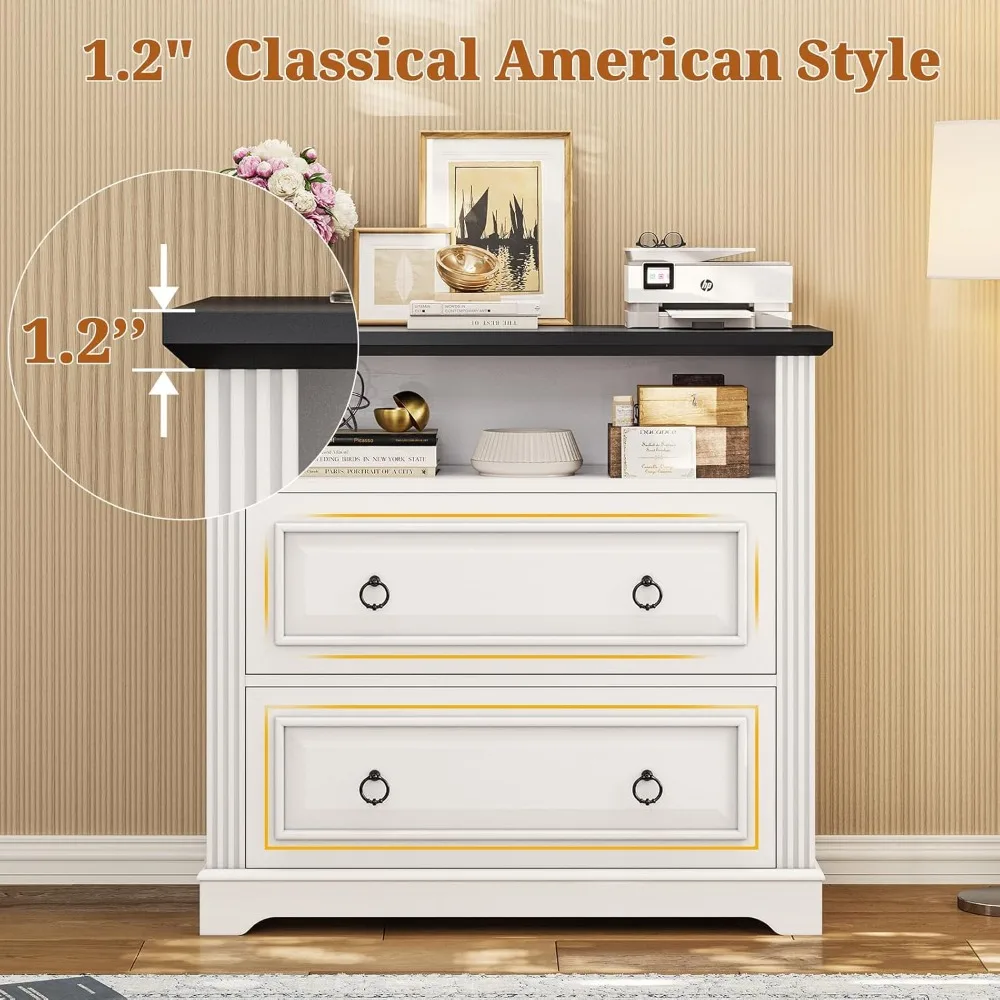 - 【For a Tidy Office, Catches All】It’s time to keep your paperwork organized in style! The filing cabinet with open storage shelf, 2 drawer keep your home office supplies in tidy and well free up your workspace. Whether you put this file cabinet in your study, office, living room, bedroom, it’s a good choice.