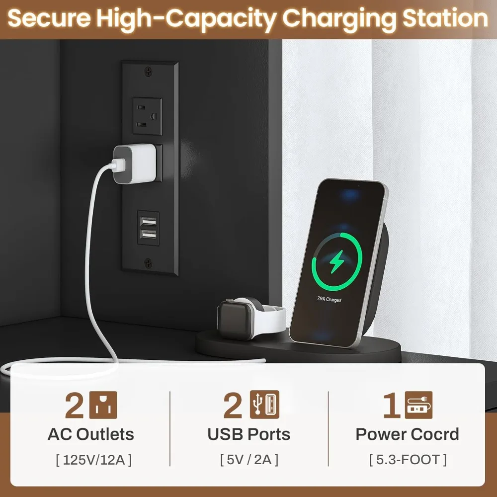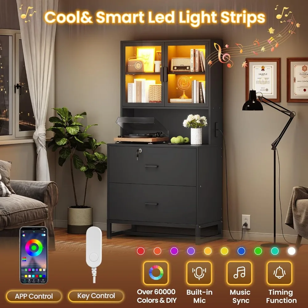 【File Cabinet with Charging Station】The home office file cabinet is equipped with 2 sockets and 2 USB ports to power up to 4 devices at the same time. The desktop size is 30.7 inches, which is large enough to use 2 machines at the same time, such as printers, scanners, copiers, laptops or other office electronic devices.