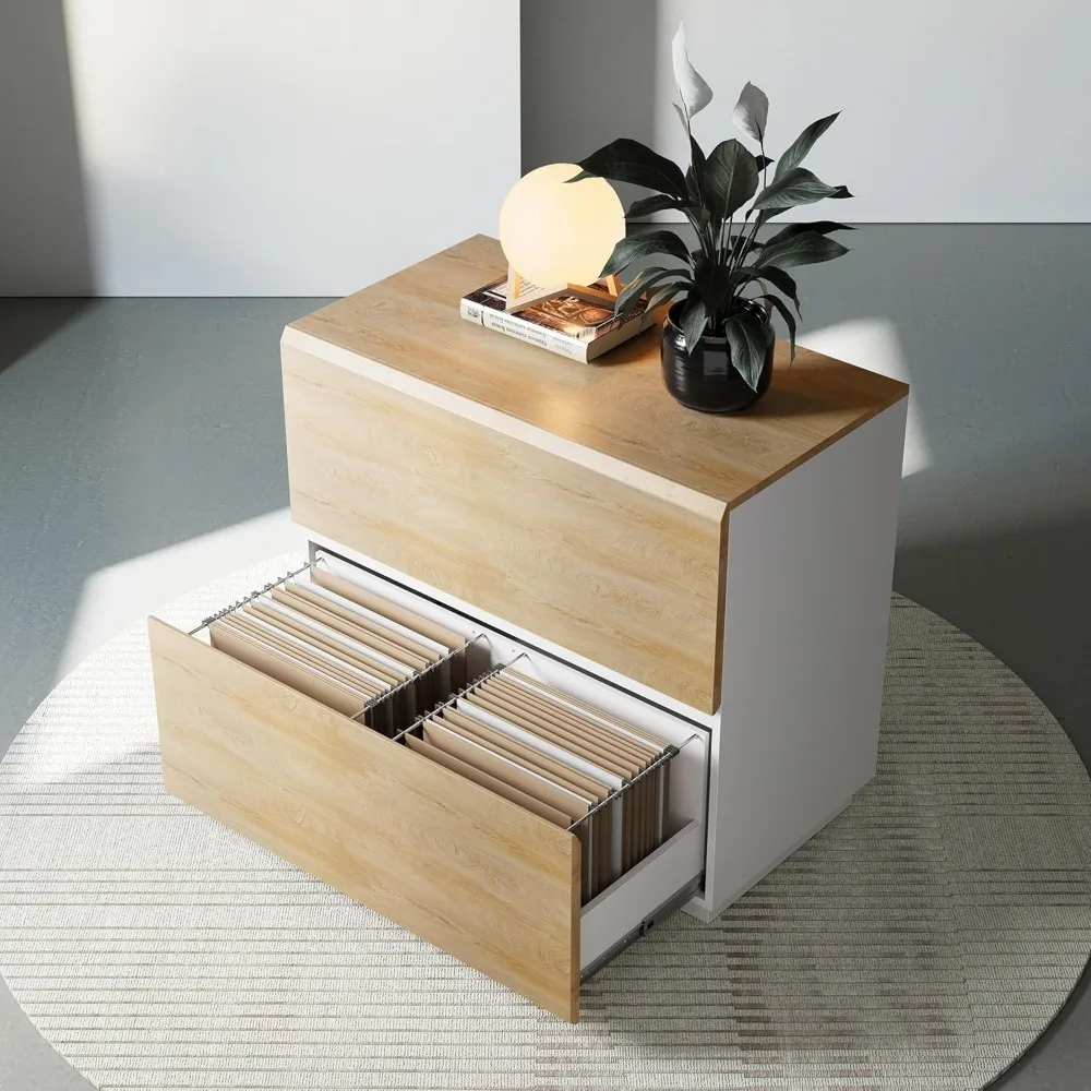 Durable and Sturdy: This lateral file cabinet is made of high-quality melamine board. It is scratch-proof, environmentally friendly and very durable.The drawer slides are made of sturdy steel material, more durable and smooth
