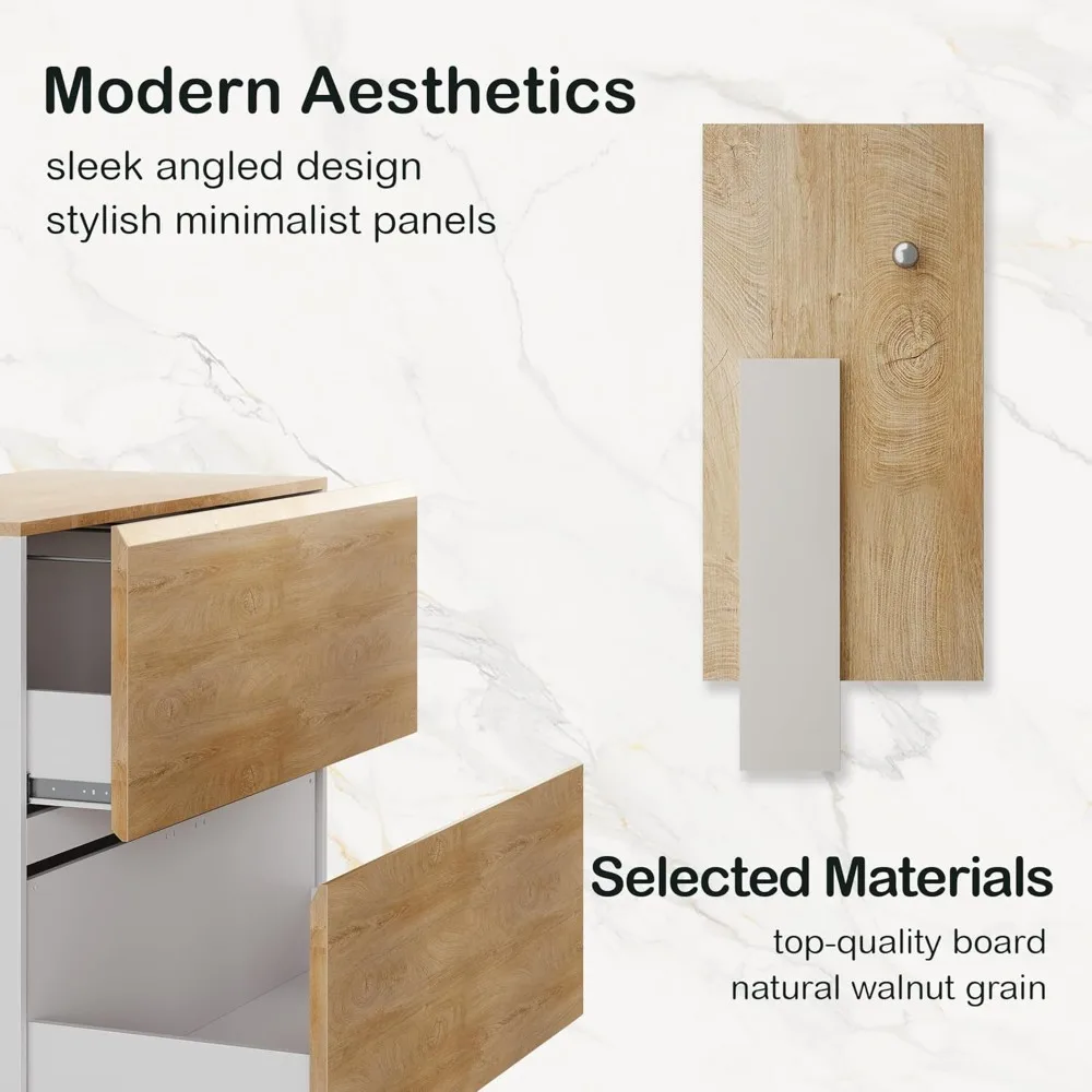 Stylish Design: Unique beveled drawers are designed with modern clean lines. Also paired with walnut to give the environment an air of vintage elegance. This file cabinet will be a good choice for both office and home