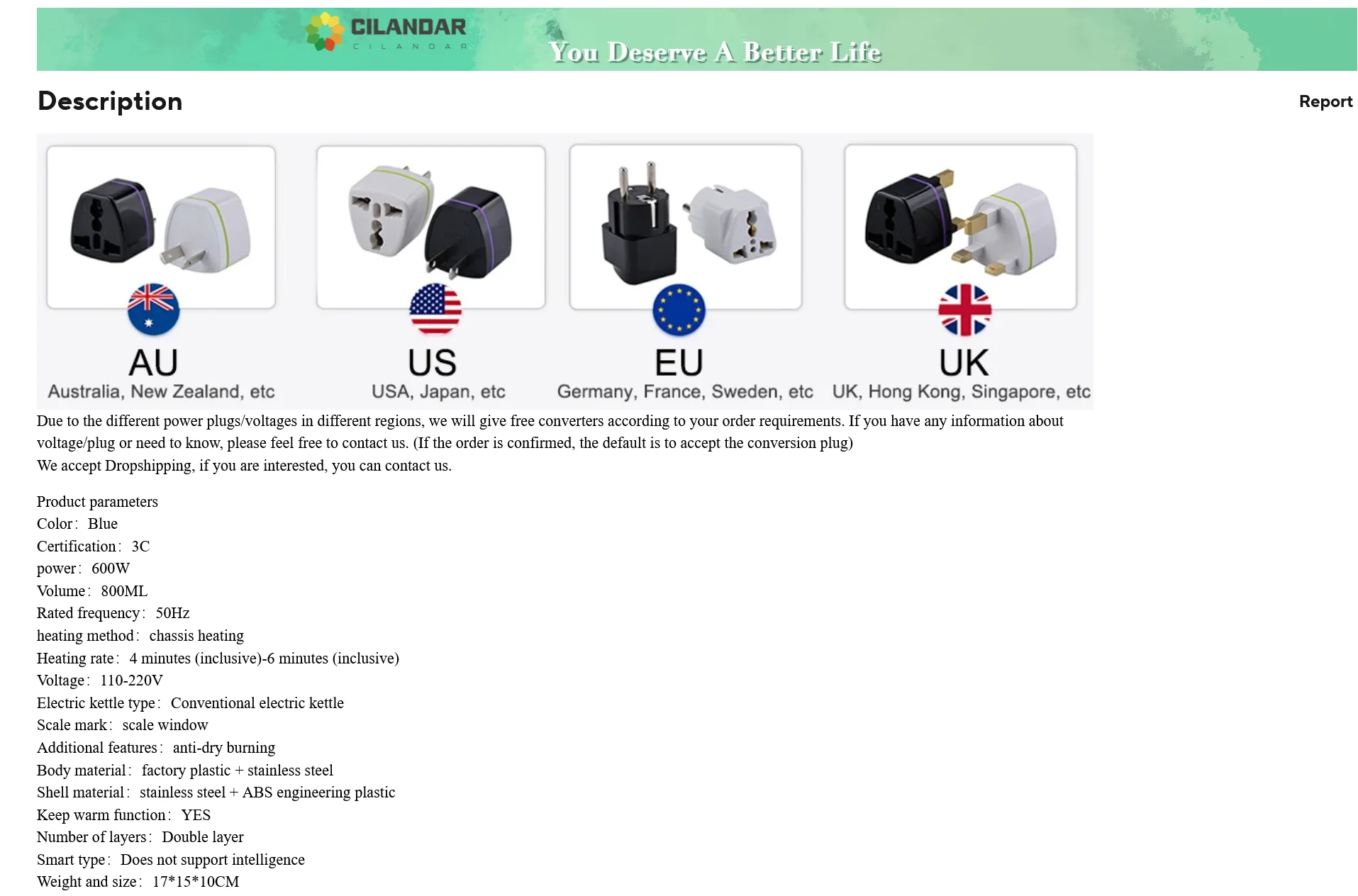 Due to the different power plugs/voltages in different regions, we will give free converters according to your order requirements. If you have any information about voltage/plug or need to know, please feel free to contact us. (If the order is confirmed, the default is to accept the conversion plug)