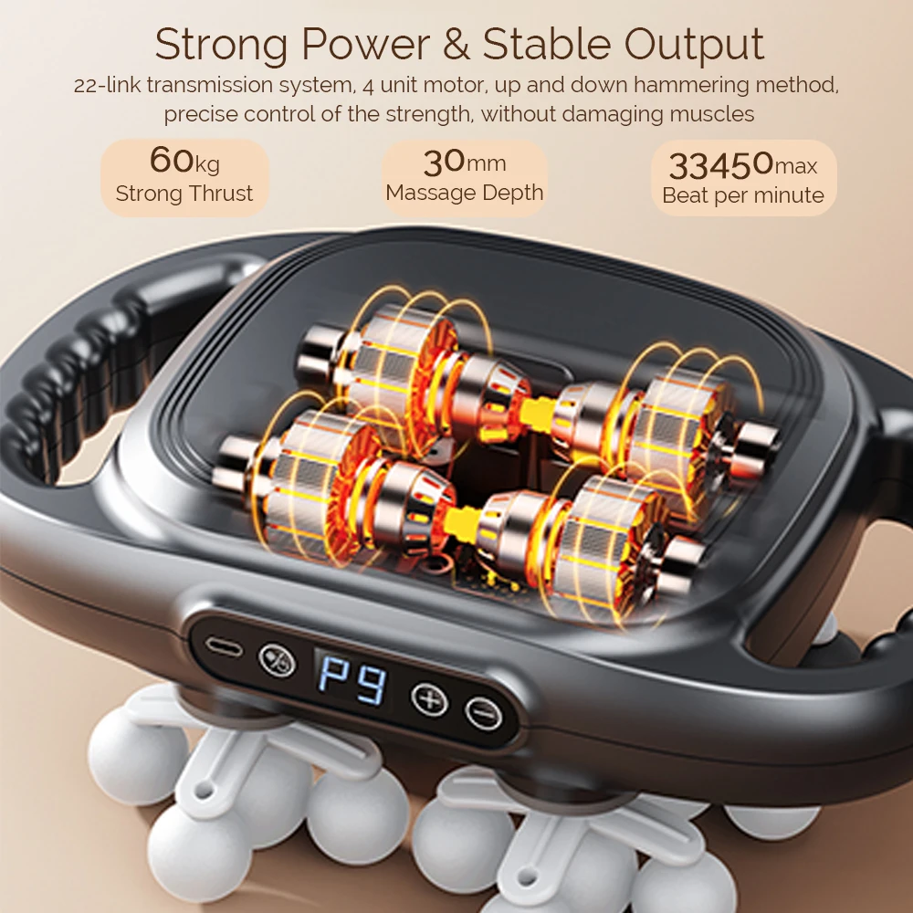5. Strong power & stable output. 22-link transmission system, 4 unit motor, up and down hammering method, precise control of the strength, without damaging muscles.