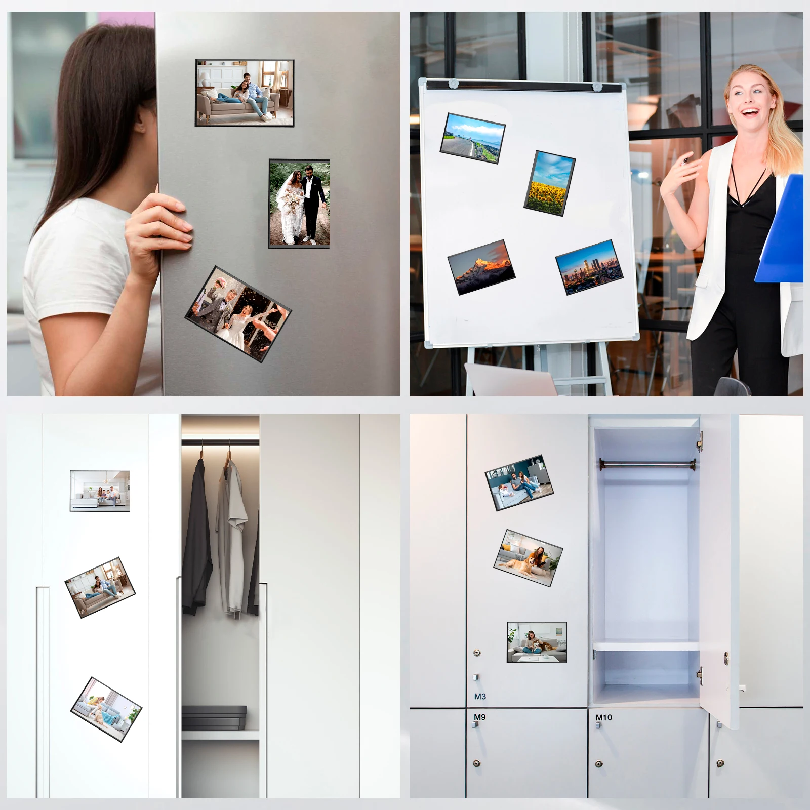 [More Places Use] Our magnetic photo frames are ideal for displaying photos on kitchen refrigerators, metal whiteboards, home furnishings, office cabinets, school and classroom lockers