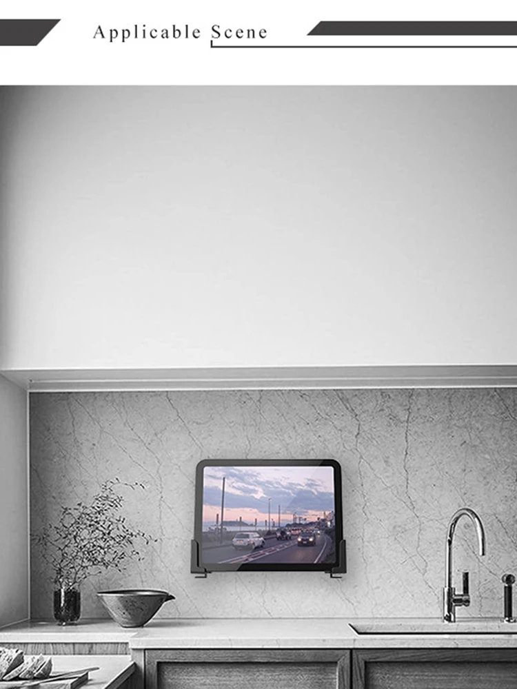 1. Wall mounted design: the wall mounted bracket can provide a safe base for your tablet and mobile phone when charging. Wide range of applications. This mobile phone wall bracket can be used for smooth and flat wallpaper, lime wall, ceramic tile, stainless steel, glass, wood and metal surfaces