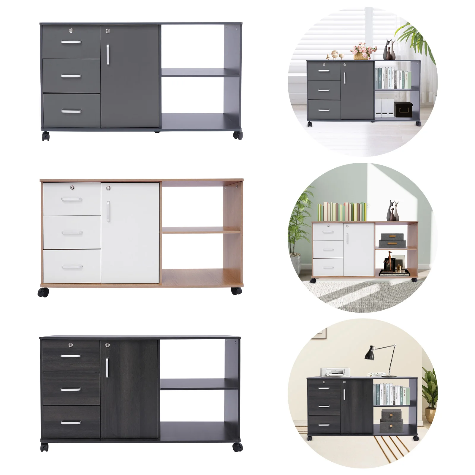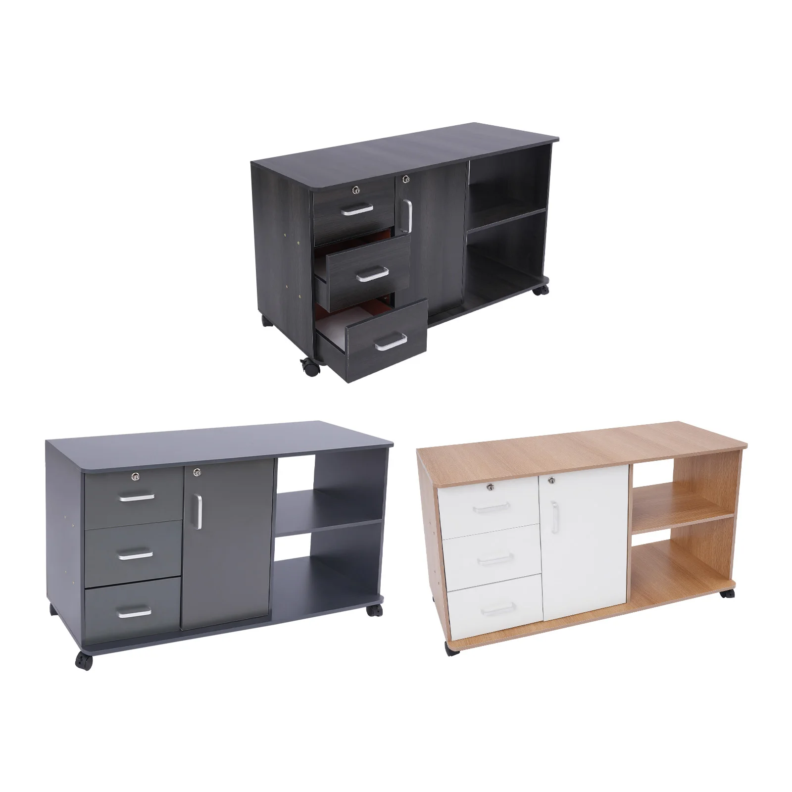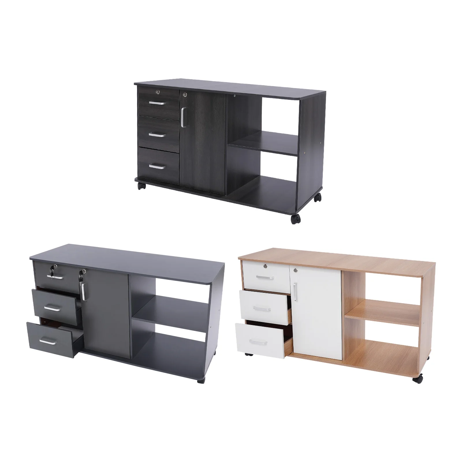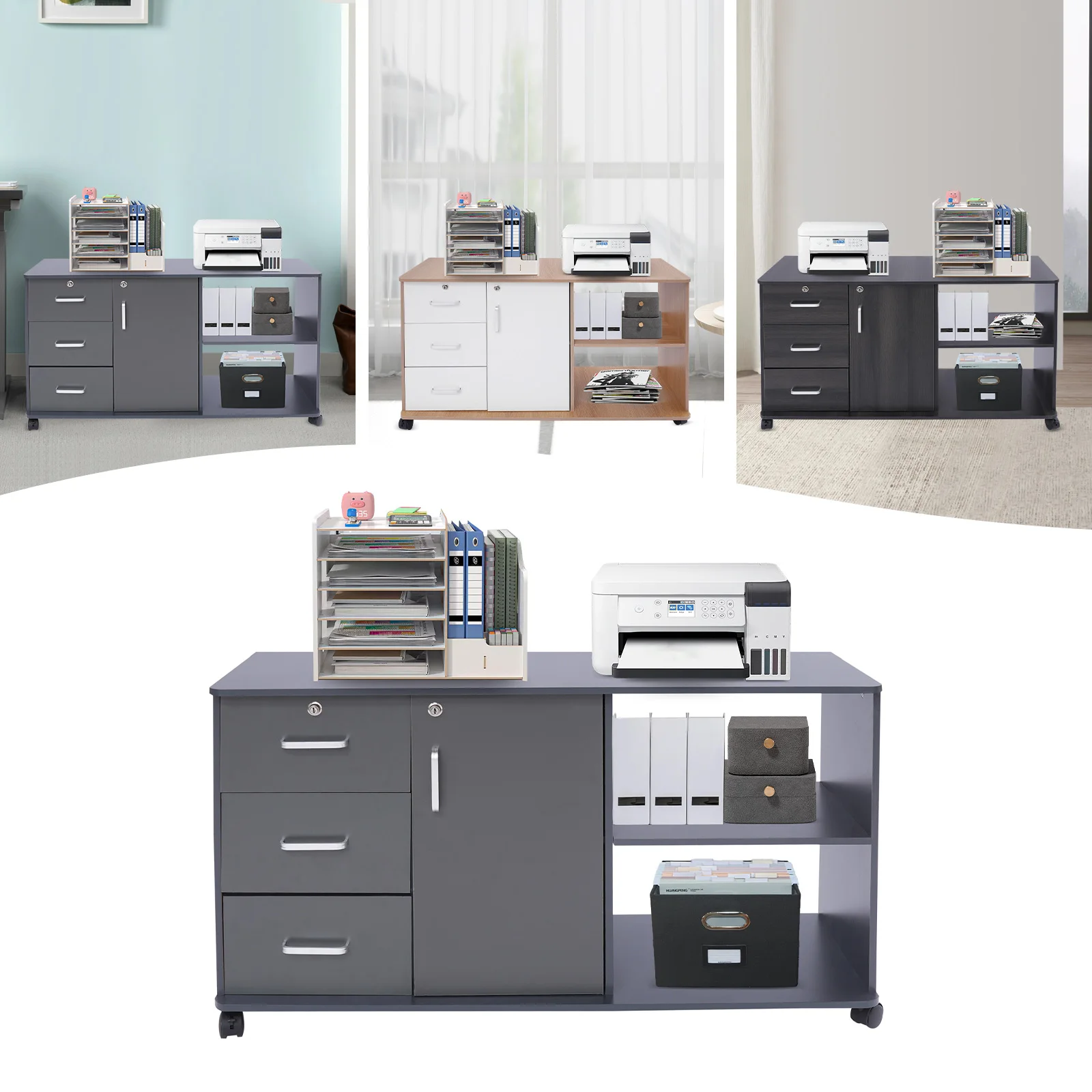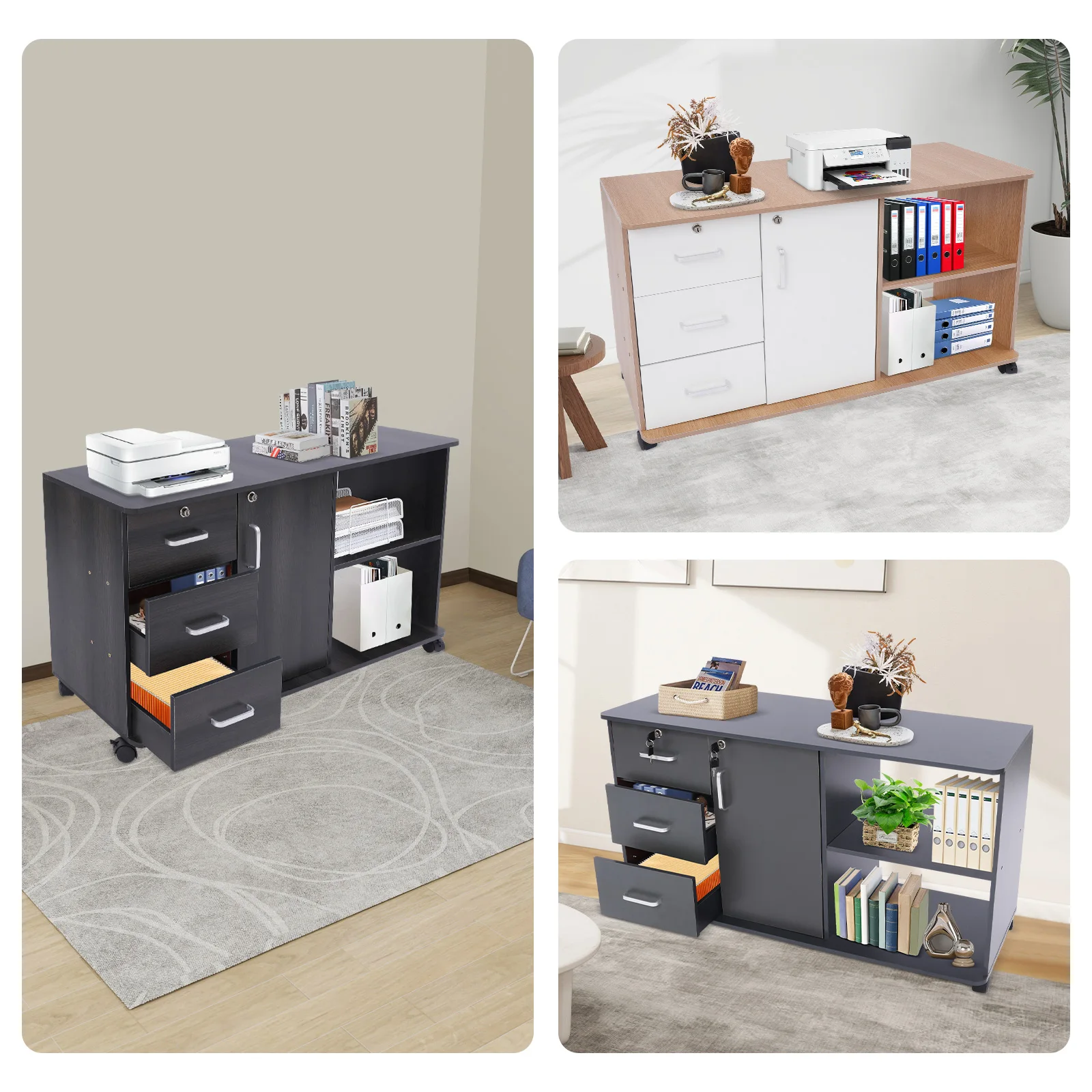 Large Storage Capacity: Designed with a combination structure of three drawers, one cabinet door, and two compartments, this product is able to fully accommodate various files and printers, fully meeting your office needs.