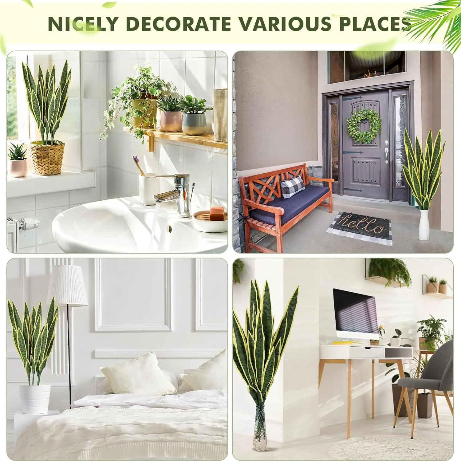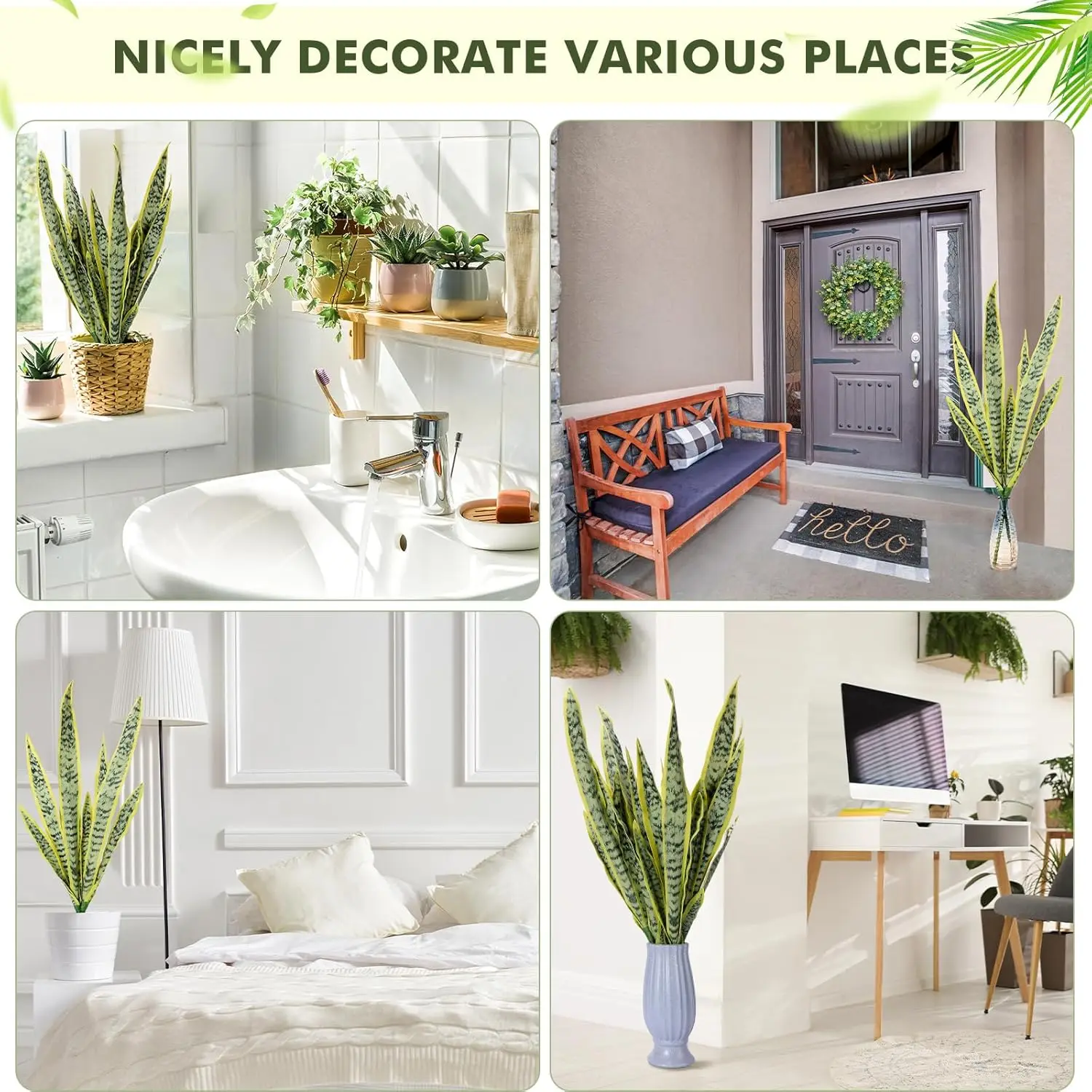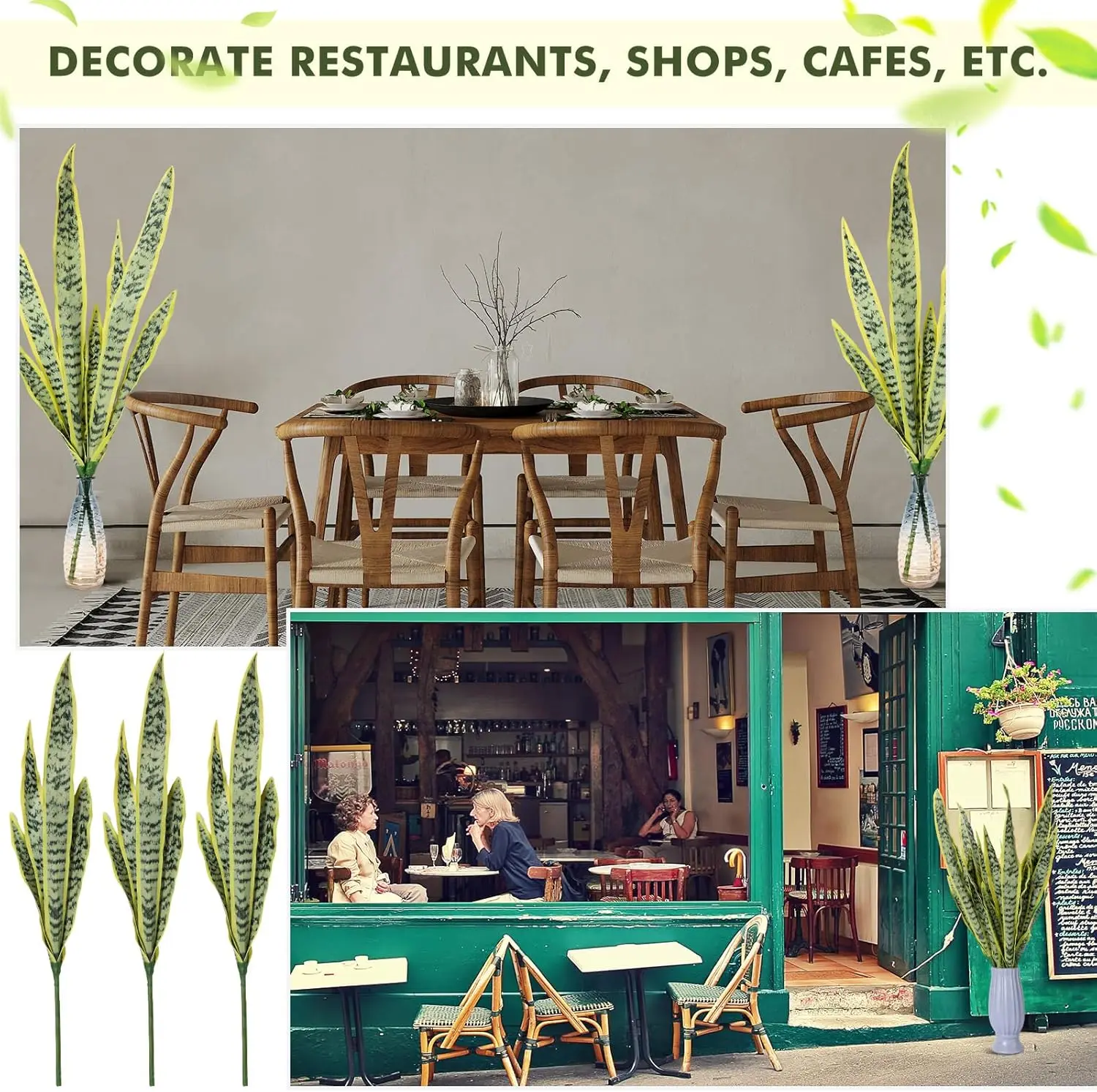 Sufficient Quantity: we will provide you with a total of 8 pieces of snake plants, with a sufficient quantity for easy daily decoration and storage, which can meet your various decorative demands Reliable Material: our fake snake plant leaves are mainly made of quality plastic, reliable and realistic, with high ornamental value, reliable enough for a long time preservation; The branches are made of paper and wire, firm and stable, and can be bent according to your actual needs Appropriate Size: each faux snake plant is about 30 inches long; The proper size makes them easy to use, either as individual decorations for a vase or in combination with other decorations Delicate Design: fake snake plants are nice for home decoration in bedrooms and living rooms in different season, which can also be applied in restaurants, weddings, birthday parties, and other festive decorations, adding comfort to the whole environment and making the overall effect better Maintain for a Long Time: you don't have to spend too much time taking care of the artificial snake plant, easy and convenient to clean and keep, to add a natural and green atmosphere to your room and your home, making the bedroom or living room look more comfortable and lively