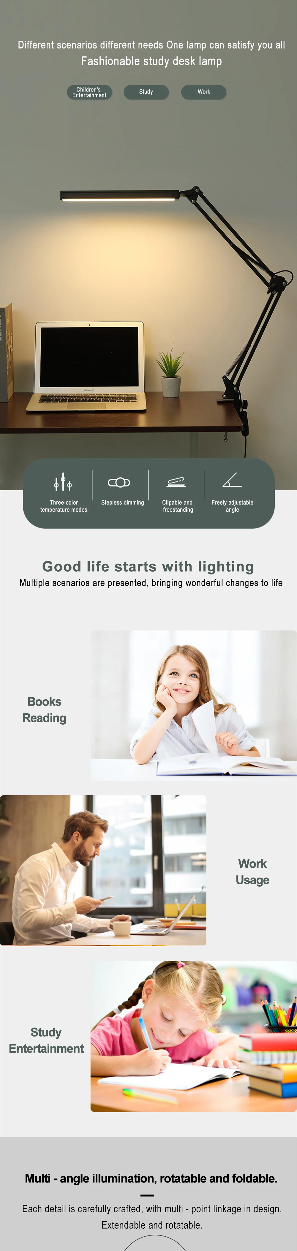 33CM LED Desk Lamp Adjustable Foldable Double Swing Arm Light Eye-Caring For Dormitory Study Office Architect Task Lamp Dimmable
