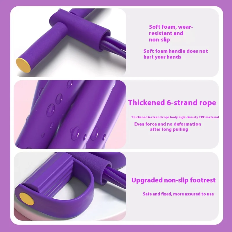 4/6 Tubes Pedal Fitness Rope: tension rope belt is composed of four high tensile elastic rope belt with handle. 4/6pcs pull ropes, high tensile strength, and good elasticity than 2 pcs ropes