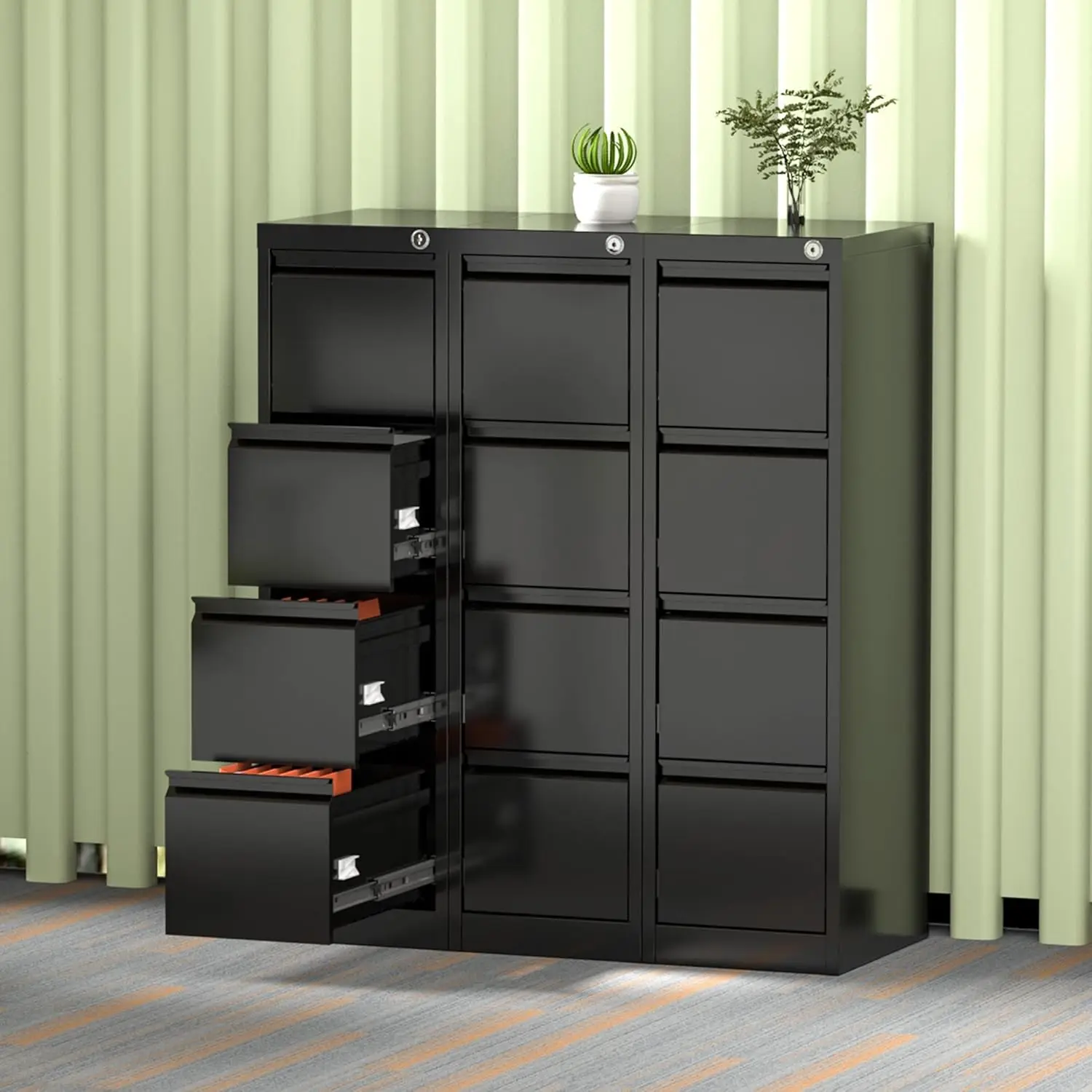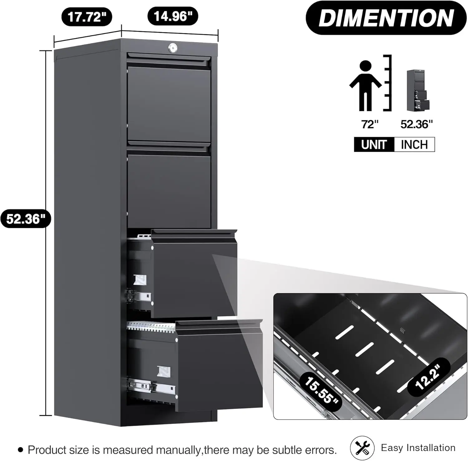 - [Easy Assemble] This metal filing cabinet 4 drawer is a knock-down structure, we provide a step-by-step manual that helps customers assemble the black file cabinet 4 drawer. Whether you're running a busy office or just need a reliable storage solution for your home, our cabinet is a perfect choice.
