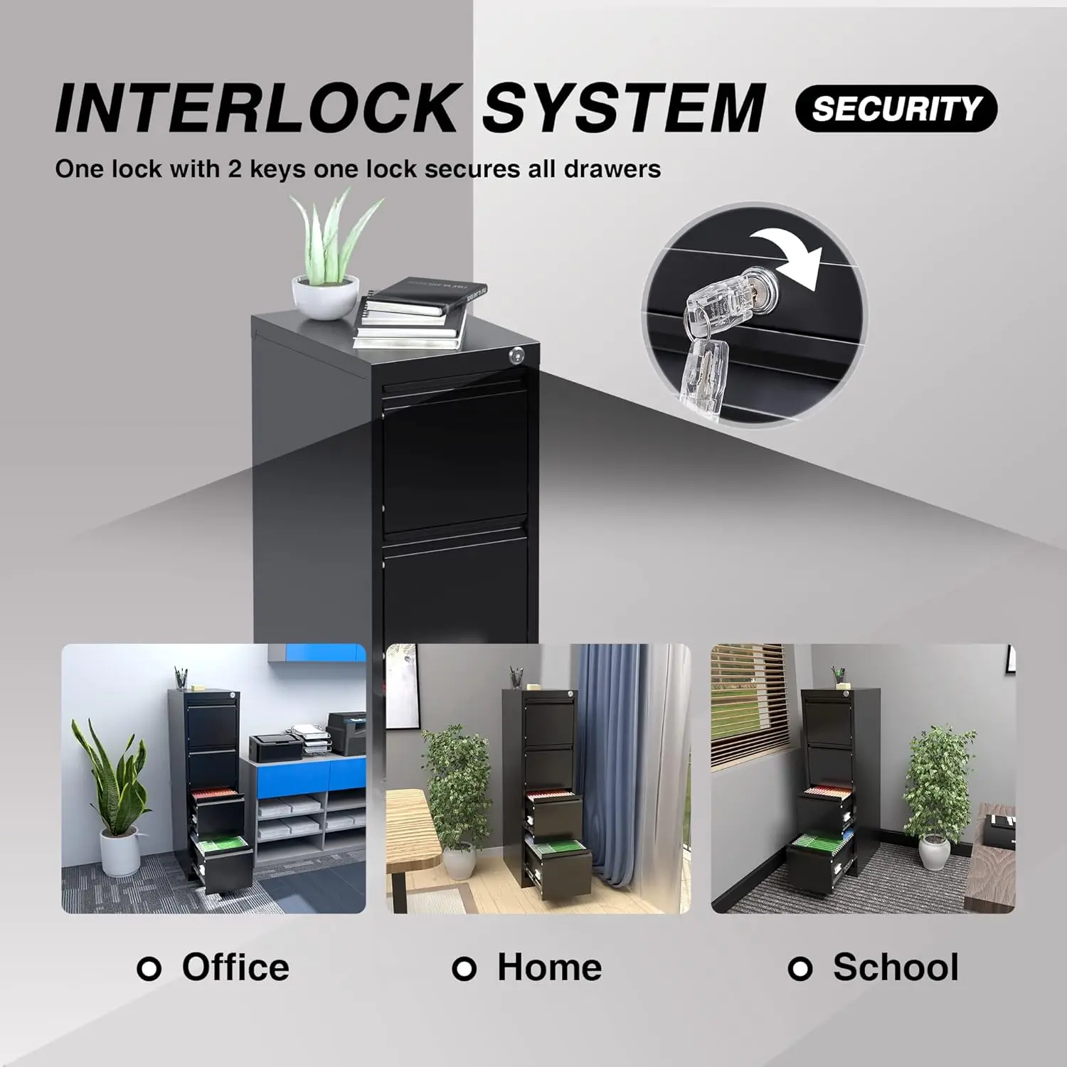 - [Anti-tilt Mechanism Design] Our 4 drawer legal filing cabinet with lock is equipped with 2 keys and with an anti-tilting mechanism. When one drawer is open, the interlocking drawer system prevents the other drawer from opening. Featuring a lockable design and anti-tilt mechanism, you can rest assured that your files are safe and protected at all times.