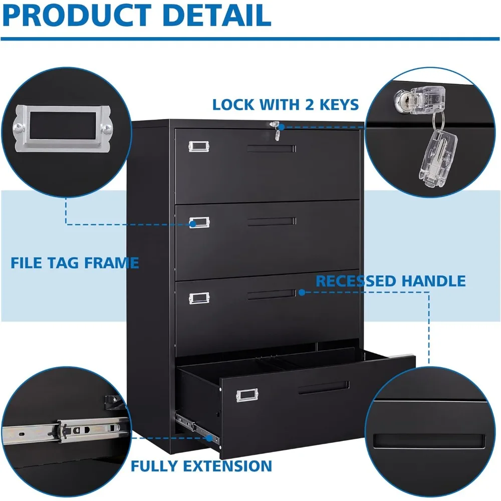 • 【HIGH CAPACITY】This Lateral file cabinet for home office has 4 layers of large storage space, fully retractable ball bearing drawer slide rails for easy access to all folders, file drawers with adjustable hanging rods can hang A4 size, letter size or legal size hanging folders to let your files Well organiz
