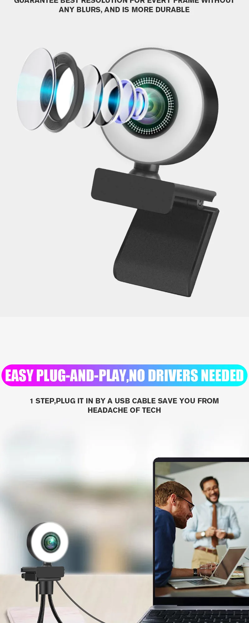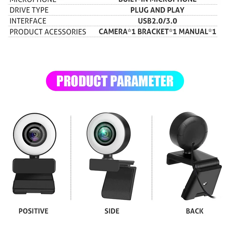 New 4K Webcam 2K Full HD Web Camera With Microphone LED Fill Light USB Web Cam Rotatable For PC Computer Laptop for Youtube