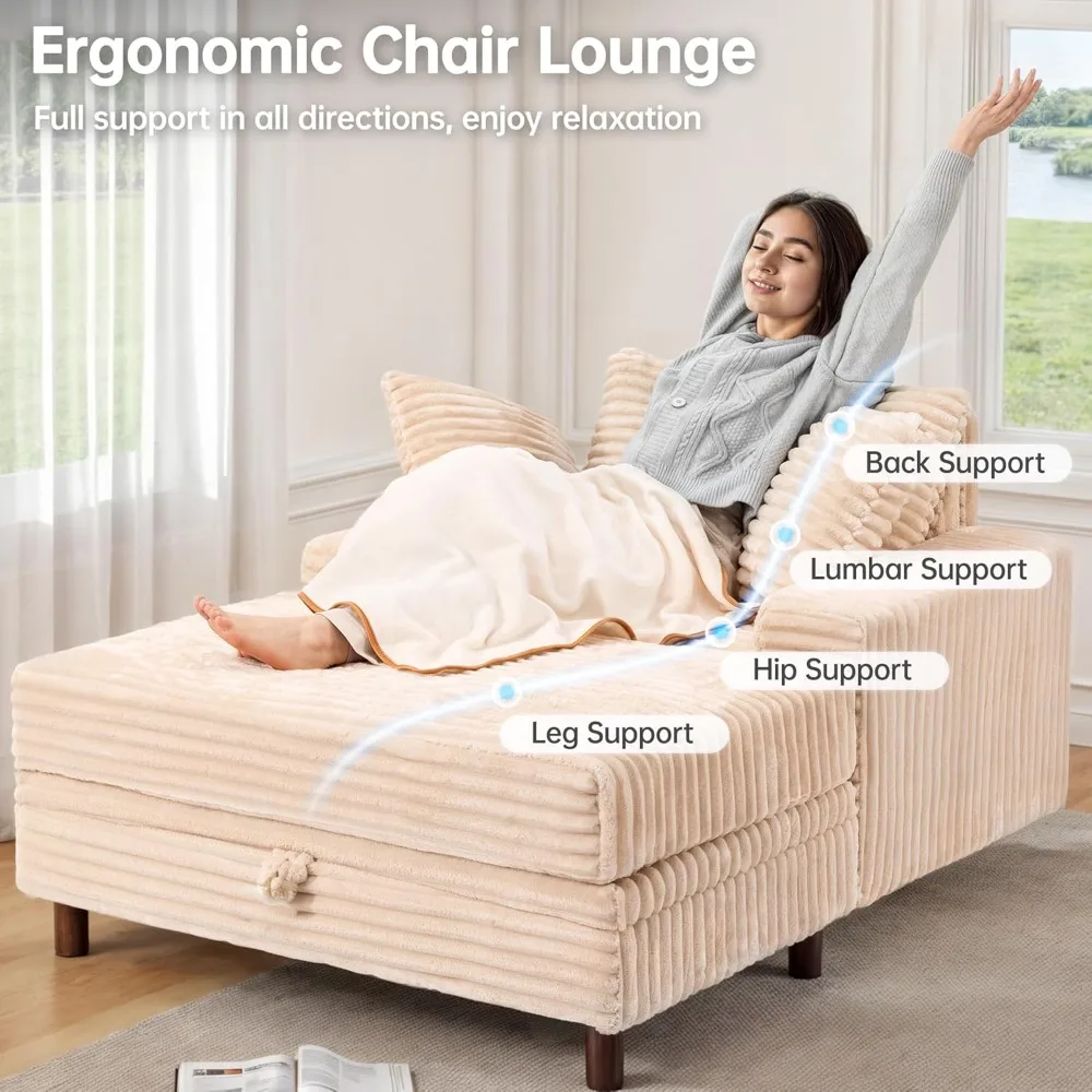 - 【Multifunctional Chaise Lounge with Storage Ottoman】: Our oversized chair with removable storage ottoman. This versatile setup can transform into a sofa chair, lounge chair indoor, and storage ottoman, allowing you to customize your setup as you please. The ottoman doubles as a hidden storage compartment, perfect for stashing toys, blankets, magazines, or everyday essentials.
