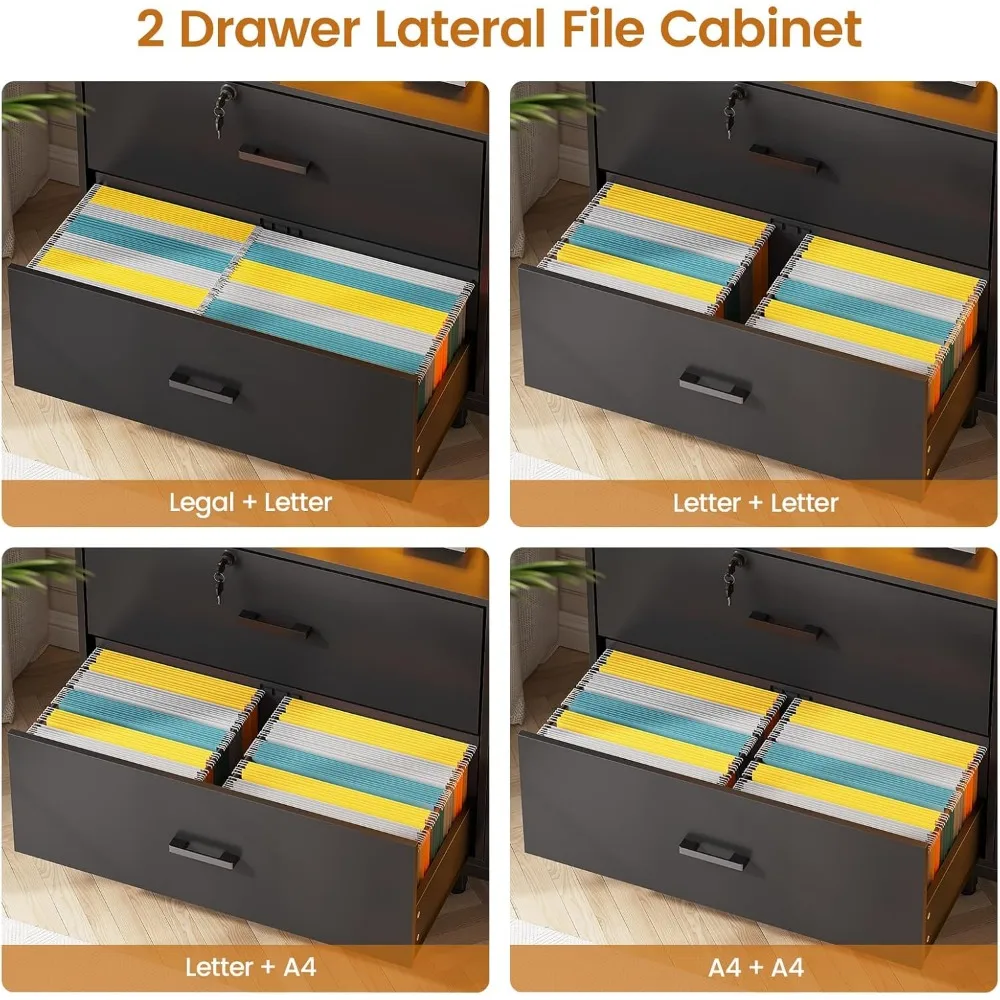 • 📁【File Compatibility & Lockable】Designed to accommodate various file sizes. Flexible hanging rods accommodates multiple sizes file: Legal + Letter Size/ Letter+ A4 Size/ Letter + Letter Size/ A4+A4 Size. No more hassle of finding the file cabinet for different file types. The lockable top drawer provides added privacy and security for your personal items.