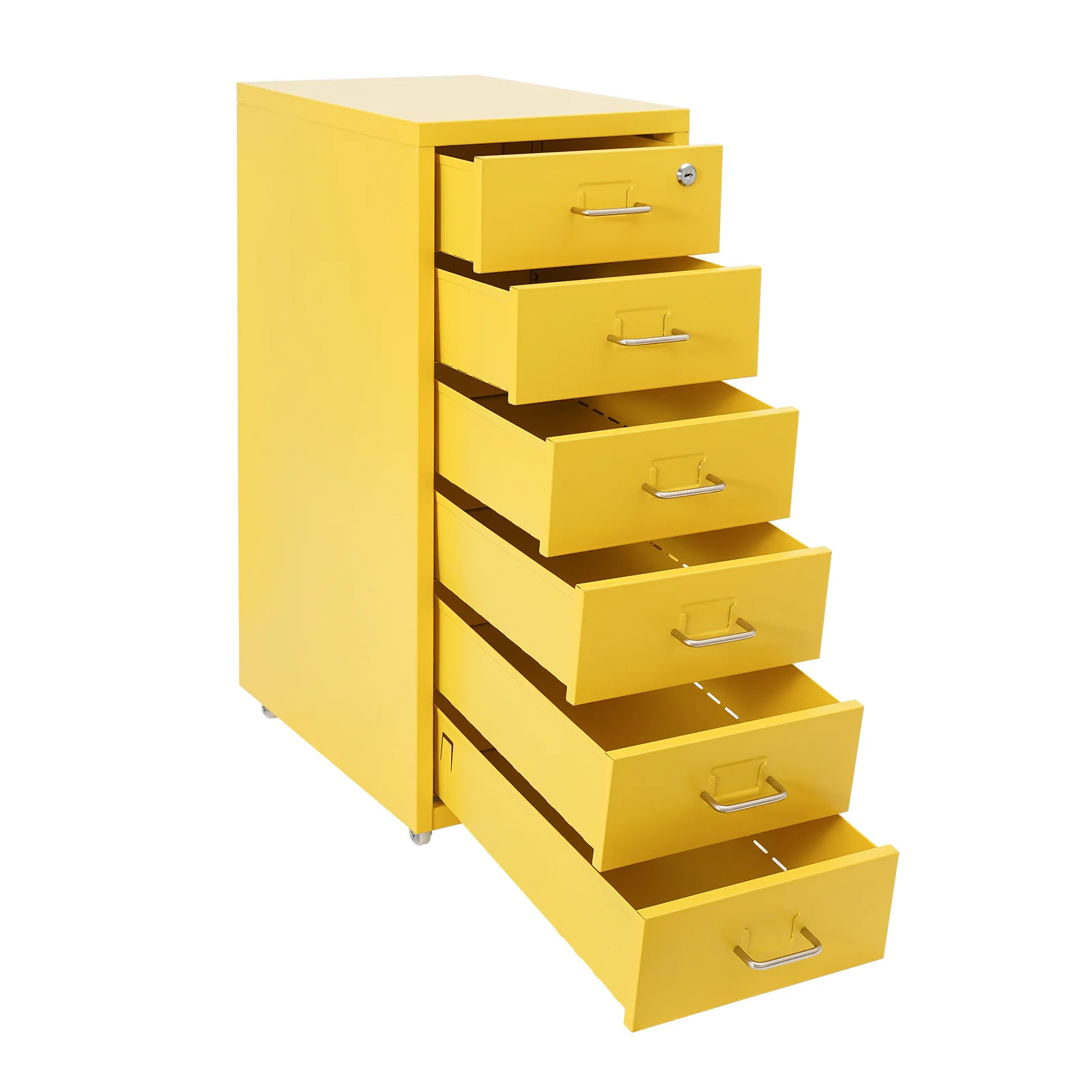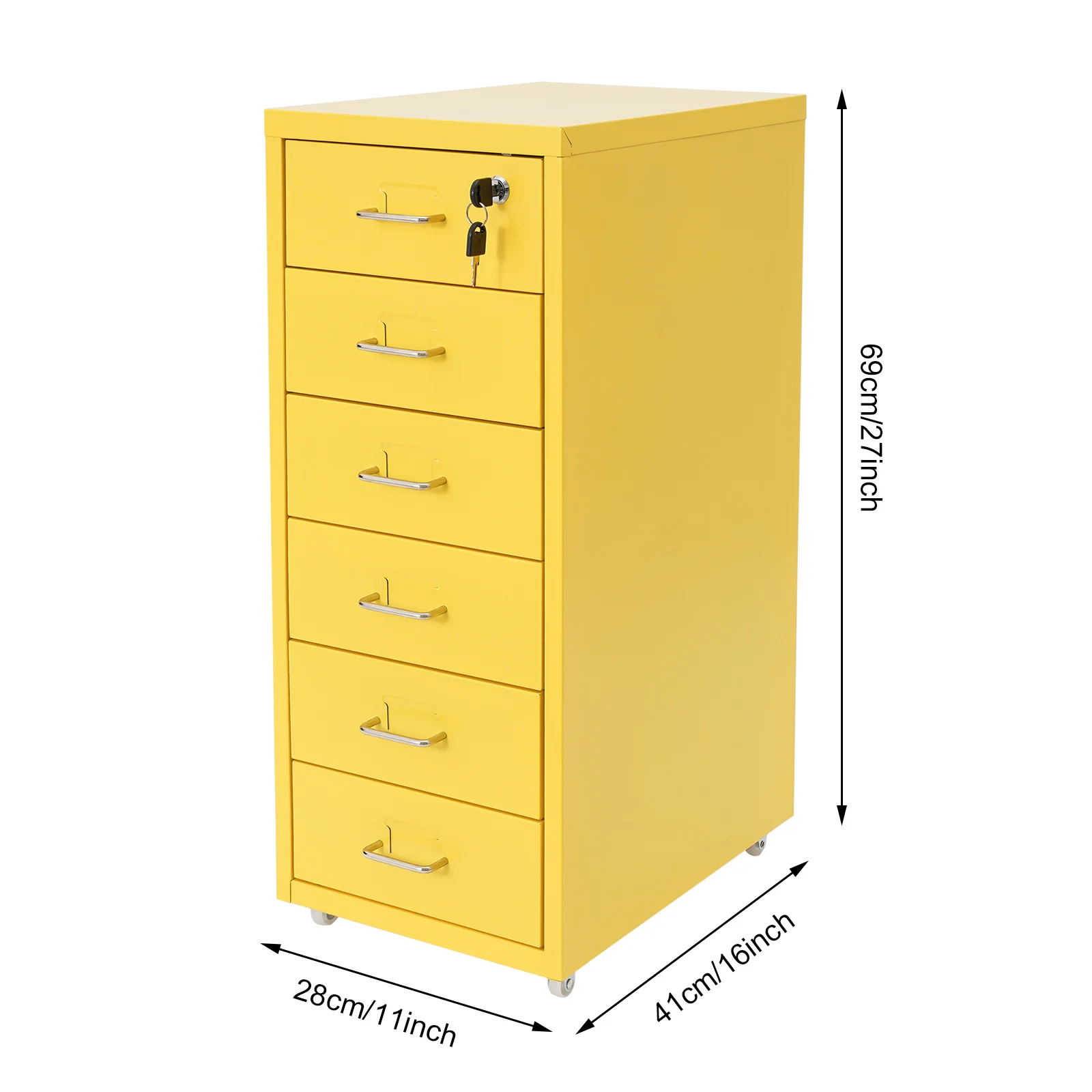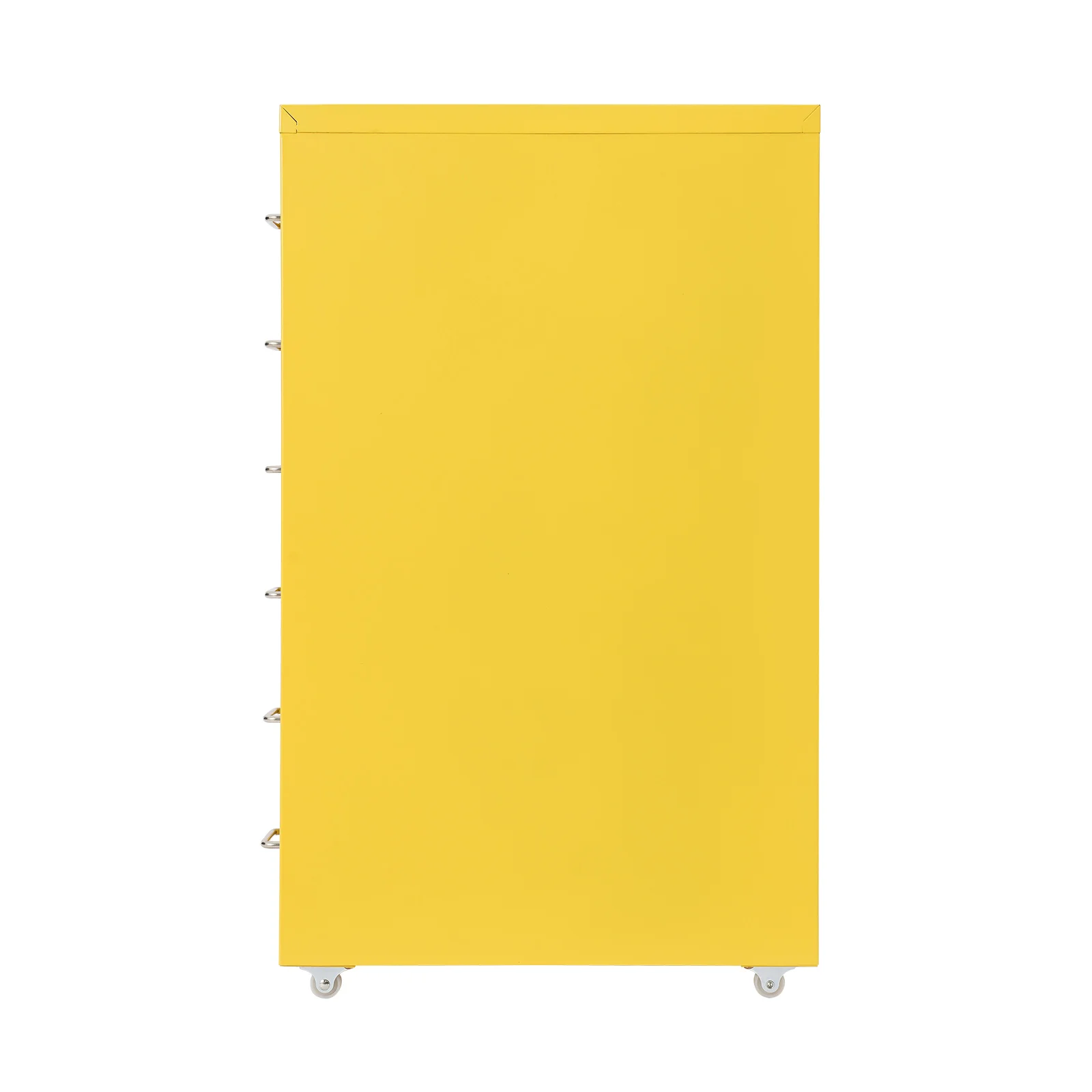 6-Layer Yellow Metal File Cabinet with Wheels - Mobile Storage for Offices, Schools & Homes, Ideal for Organizing Documents ect.