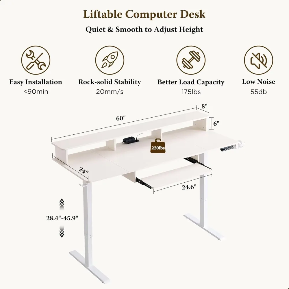 - Smooth Height Adjustment with Memory Presets: Effortlessly switch between sitting and standing with electric height adjustment from 28.4" to 45.9". Save your favorite heights with 4 memory settings—just press a button, and the desk adjusts automatically for ultimate comfort and productivity.