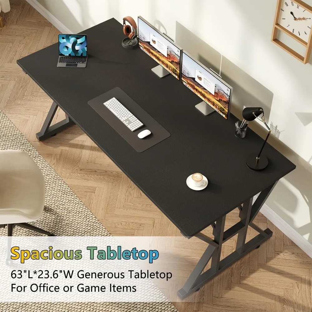 - 【Stylish Design】: This 63 inch computer desk features a simple x-shaped profile design and a vintage wood finish, adding an elegant touch to any workspace. The modern design and exquisite finish make this computer desk versatile and suitable for any decoration
