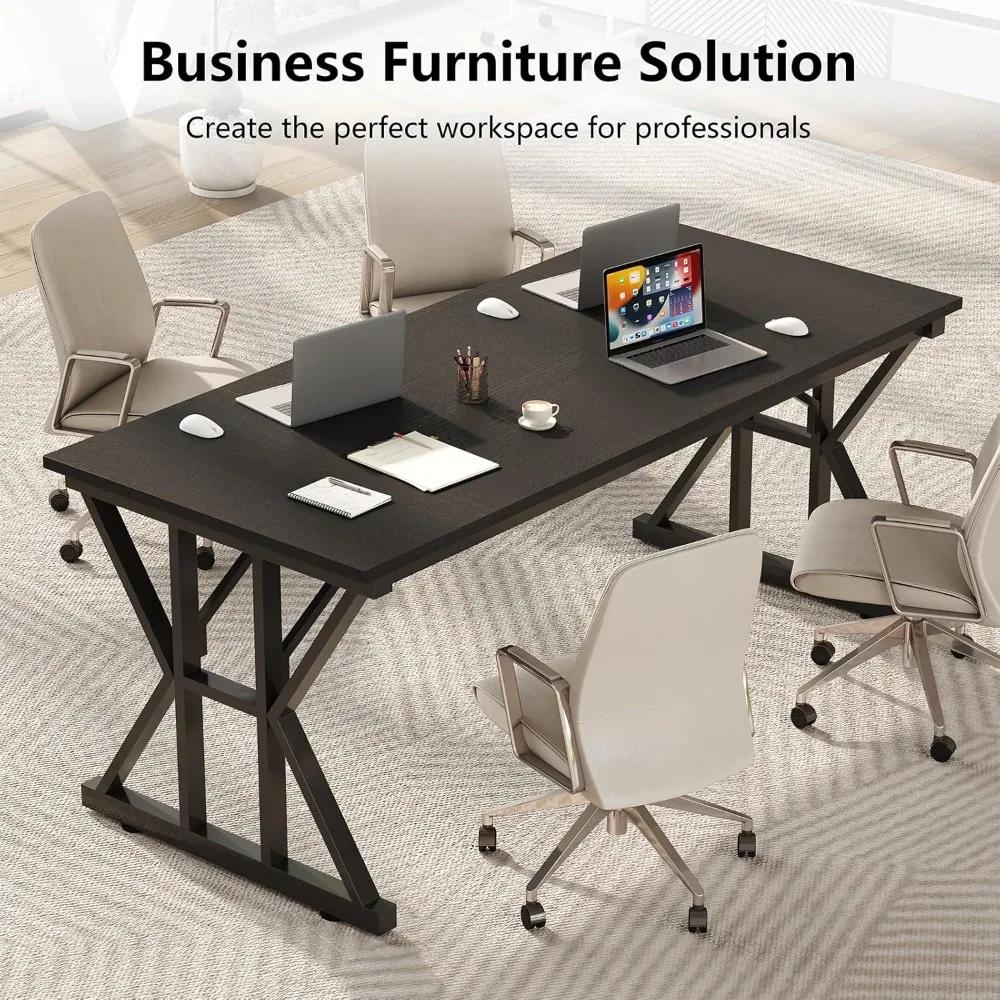 - 【Spacious Desktop】: This executive desk has a spacious 63"L x 23.6"W desktop that can easily accommodate your laptop, desktop computer, books, documents and other office supplies. This office desk is suitable for 4-6 people to work together, leadership meetings