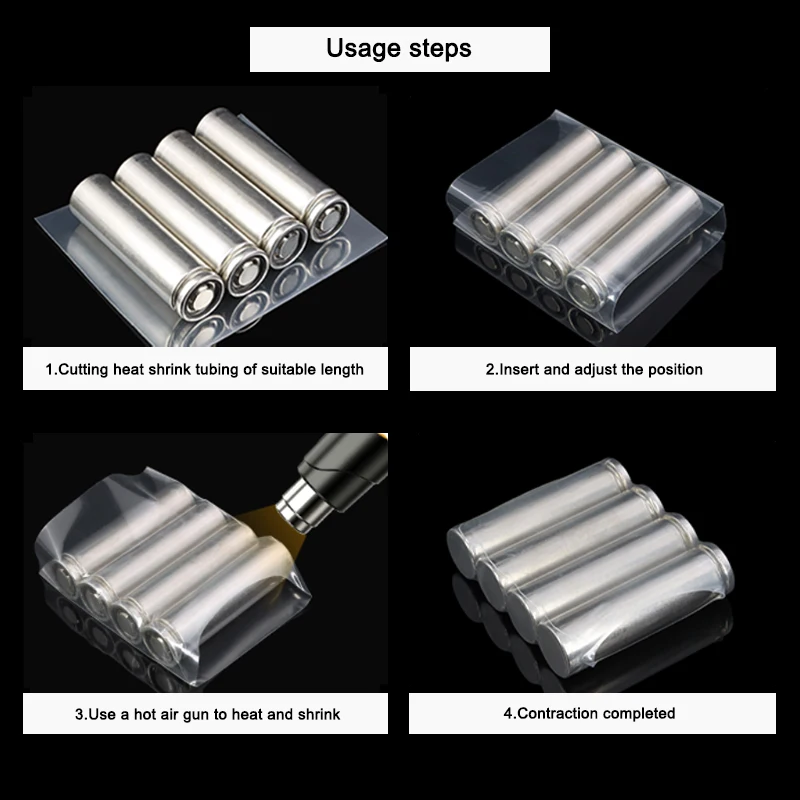 Usage: PVC heat shrink tube is widely used in electrolytic capacitors, batteries, electronic components, lighting, LED pins, bottle mouth combination packaging, etc., to beauify the appearance of the coated material, ensure insulation, moisture-proof, anti-corrosion, dust-proof etc. It is recommended to use a heat gun to heat it up for shrinkage.