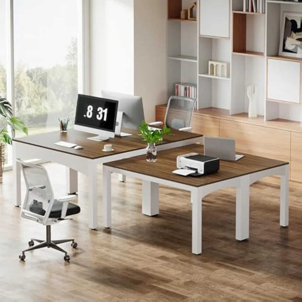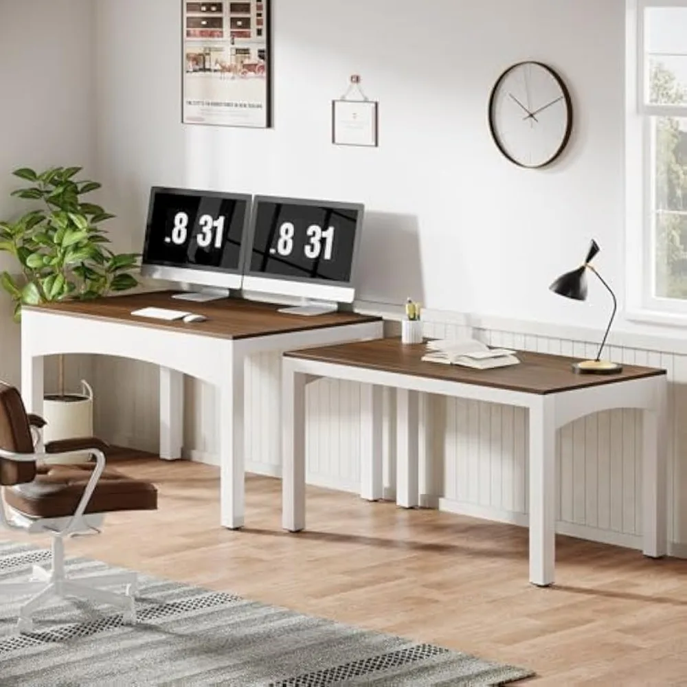- Classic Farmhouse Aesthetics: With a nod to classic American farmhouse aesthetics, this computer desk gracefully pairs a rich walnut wood-finished tabletop with tasteful white legs, creating a cozy and inviting workspace in your home office.