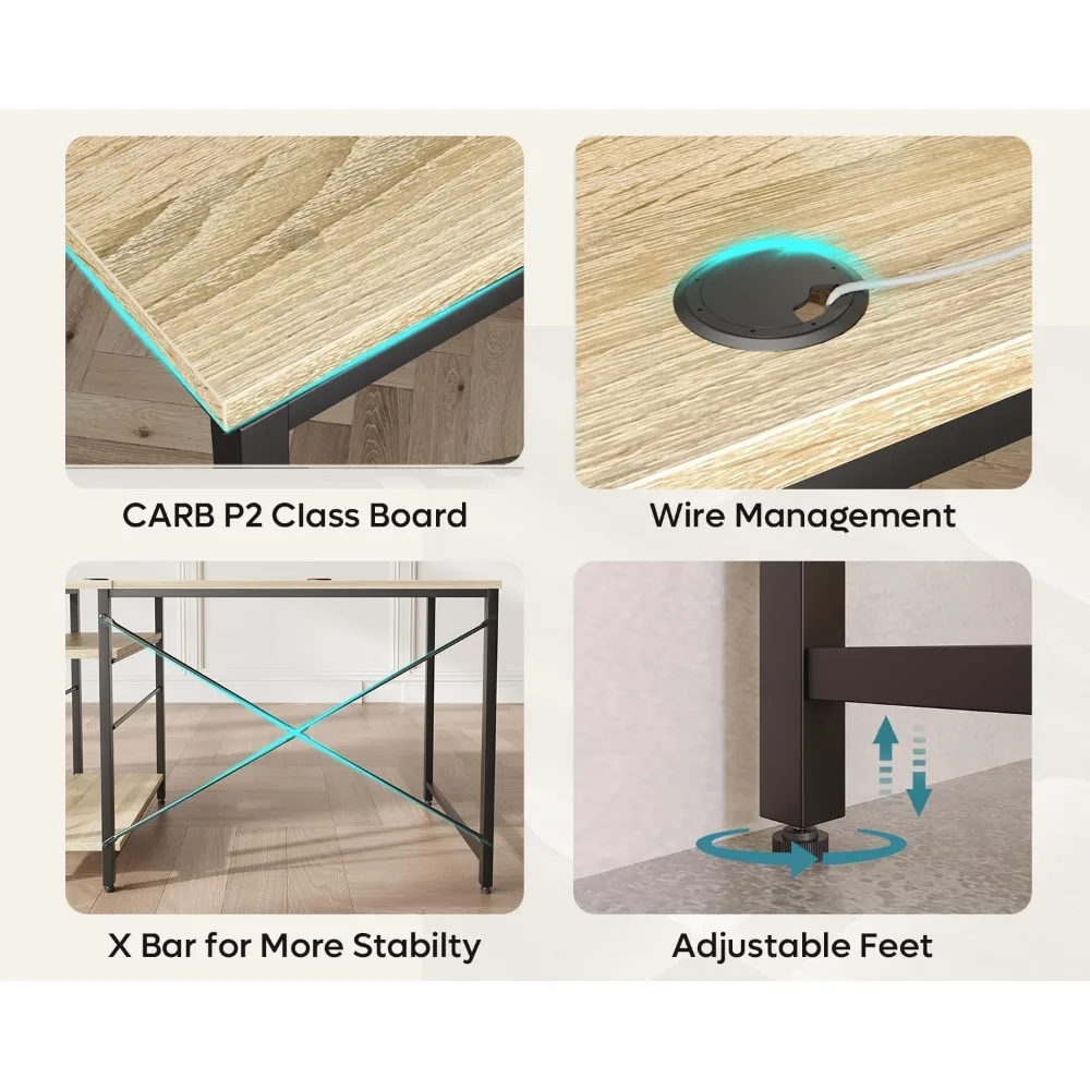 - Sturdy Build: Crafted of metal frame and P2 Class Wood certified by CARB, the office computer desk functions very stable for long time use.