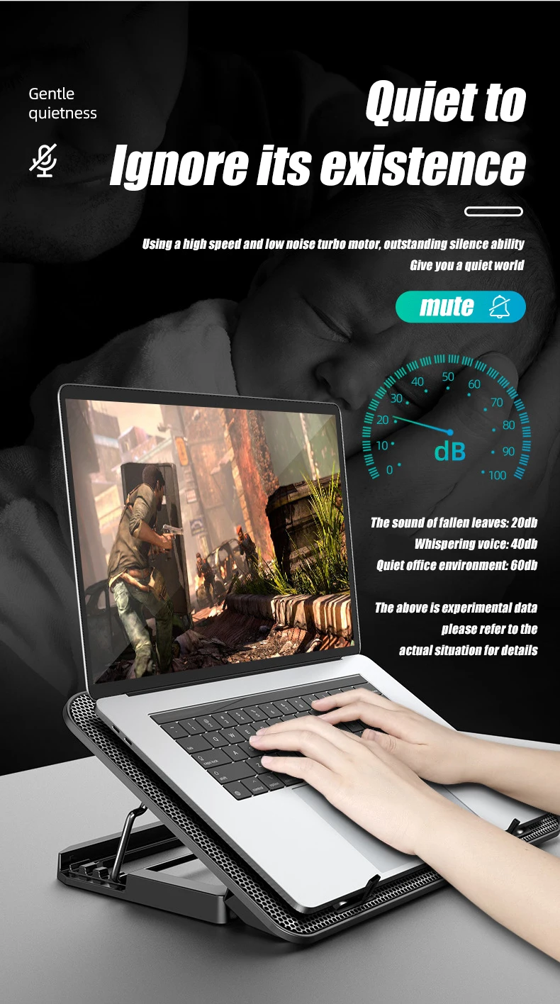 A9 Gaming RGB Laptop Cooling Base 2 USB Ports 6 Fan Gaming LED Light Notebook Cooler For 13-18 Inch For Macbook Laptop Stand