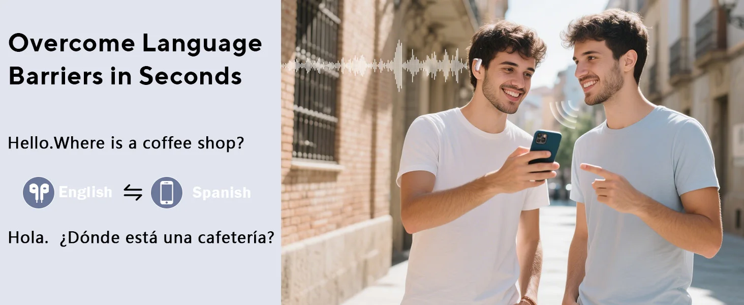 3. Offline Translation Capability: Perfect for travelers in remote areas, the AI translator earbuds' paid offline mode supports translation in eight languages, including Chinese, English, Japanese, Korean, Russian, German, French, and Spanish, without the need for an internet connection.