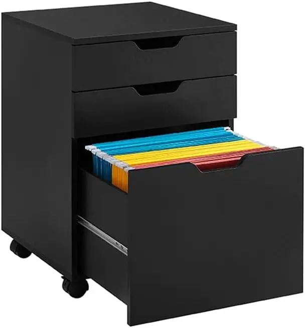 Keep your office in order With three spacious drawers, this filing cabinet provides ample space for your office essentials, documents or personal items. The bottom drawer is designed specifically to accommodate A4-sized documents, keeping paperwork neat and accessible.