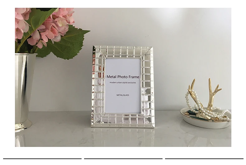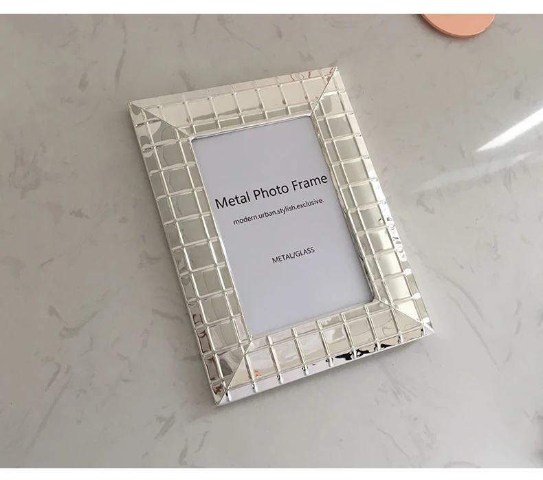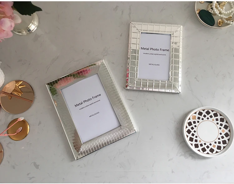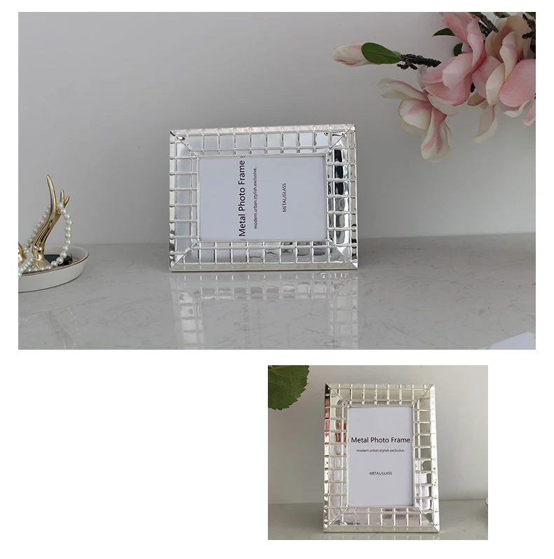 Aqumotic Nordic Iron Photo Frame Simple Silver Mirror Picture Frames Decorative Metal Set Up Wall 6" 7" 8" Office Desk Tool