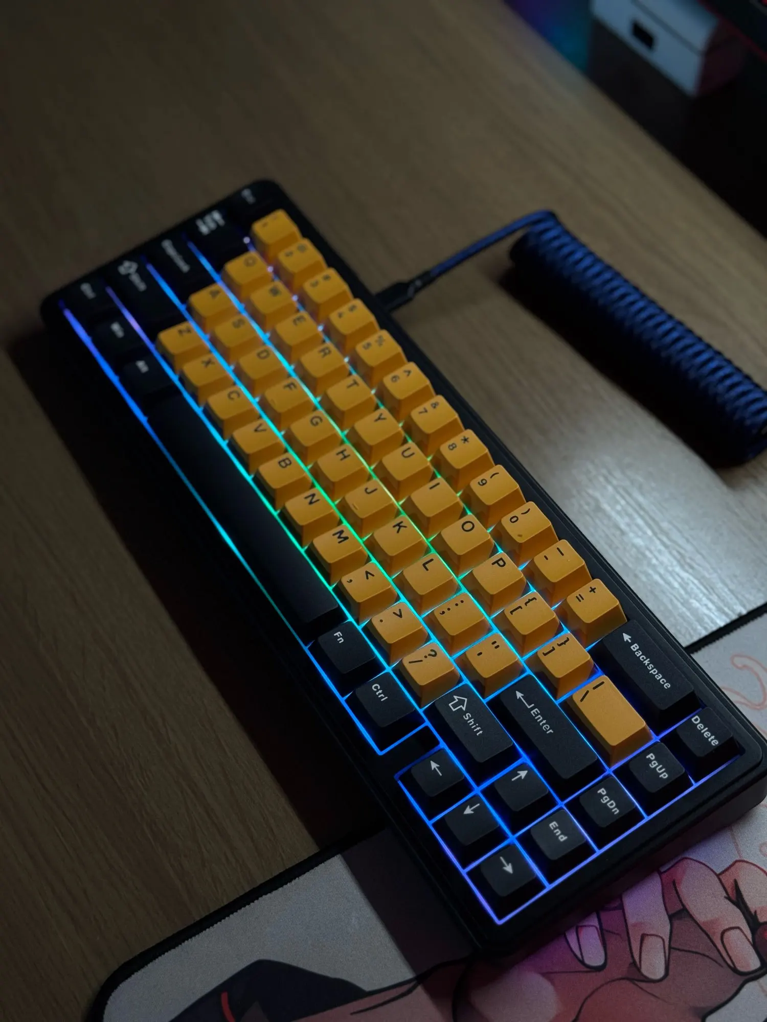 F65's keycaps are made of PBT material with high content, the surface of the keycap is not easy to wear. Keycap surface frosted touch, bring you very comfortable typing enjoyment,with more color available.