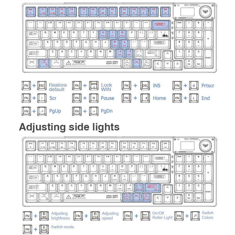 Beautiful keyboard with 16.8 million RGB cool backlight. brightness and lighting speed are adjustable. Users can custom the backlight via the AULA driver.With transparent keycaps make it look more fashion!