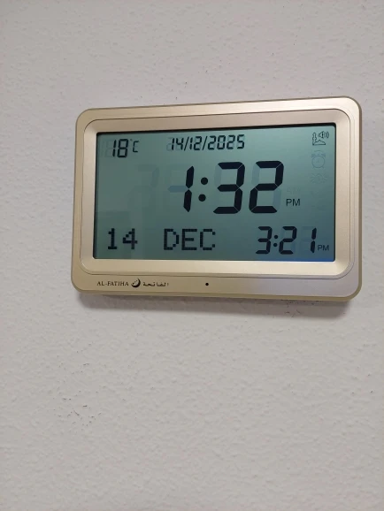 【Multifunctional Alarm and Calendar】: The desk clock comes with a daily alarm and prayer alarms to keep your schedule on track. It also includes both Gregorian and Hijri calendars, catering to different cultural needs.